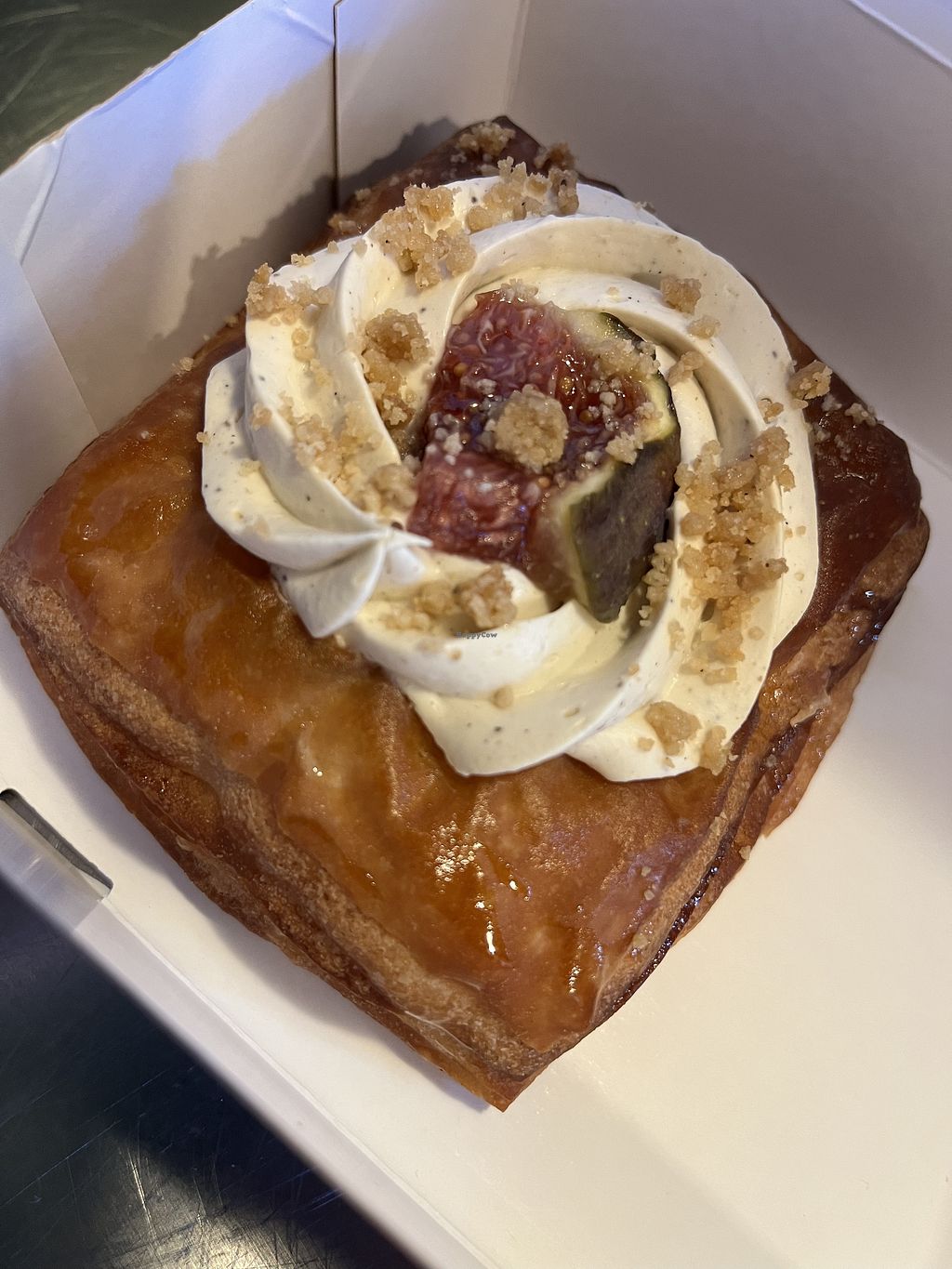 Small but DELICIOUS selection of vegan bakery items! The Cardamom bun was next level delicious, and the peach vanilla strawberry Danish was incredible too! Plus we both tried drinks from the menu that we have never had before!