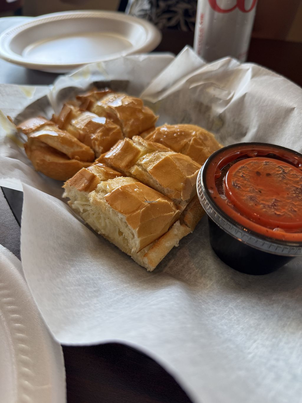 We got the garlic knots speciality pizza, the Philly cheesesteak pizza and cheesy bread. Ended up being a lot of food for 2 people but we almost finished it! Delicious and great for takeout