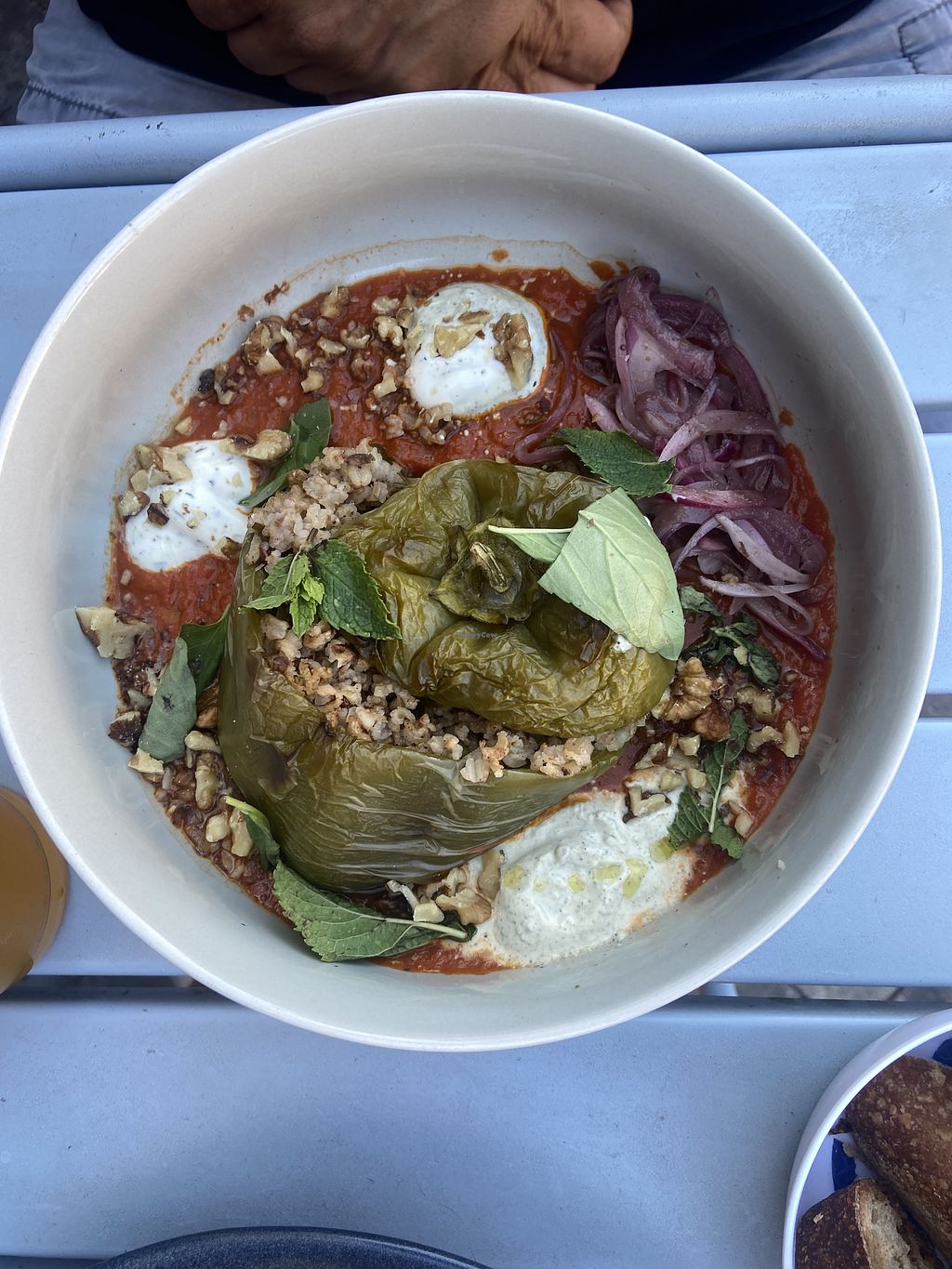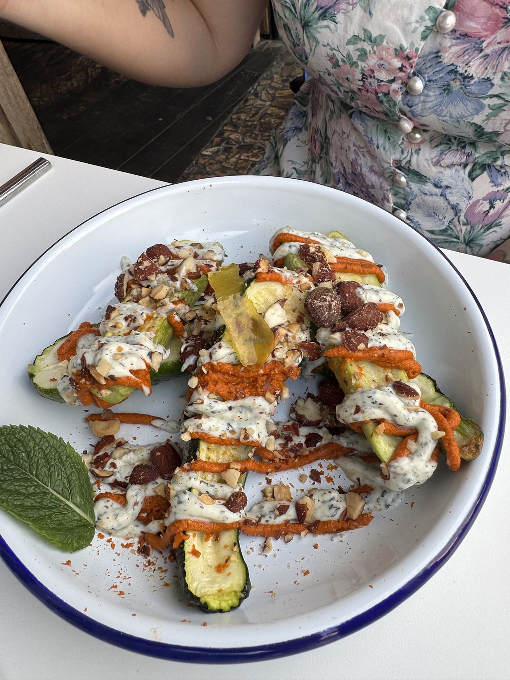 We went on a Sunday evening so they only had a few dishes available. We had the vegan burger and the lentil “meatballs”. It was one of the best burgers I’ve ever had! Especially the bun was so fresh and delicious. We also had chocolate brownies for dessert.