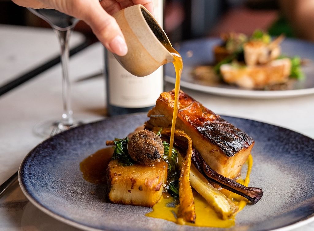Serves meat, vegan options available. British/Asian fusion restaurant offering a large range of vegan dishes on all menus. Items include French toast, breakfast pastries, mushroom Wellington, millefeuille, ramen, bao buns & Korean pancakes. Open Tue-Thu 09:00-22:30, Fri-Sat 09:00-23:00, Sun 09:00-17:00. Closed Mon.