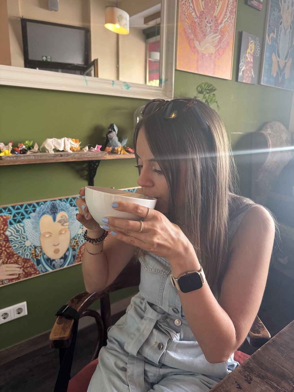 Wir hatten eine Suppe, eine Schnitte und einen Milchkaffee. Was erstmal vielleicht nicht unbedingt spektakulär klingt, ist aber unvergleichlich. Die Suppe war mega lecker und außerdem eine überraschend große Portion. Dazu kam sie mit einer separaten Schnitte von ihrem selbst gebackenen Brot. Ich will direkt sagen, dass sie die am besten belegten Schnitten macht, die ich je hatte. Viele Toppings, liebevoll drapiert und geschmackvoll aufeinander abgestimmt. Der Milchkaffee kam ebenfalls in einer kleinen Schüssel, so groß war er. Einfach toll 😊