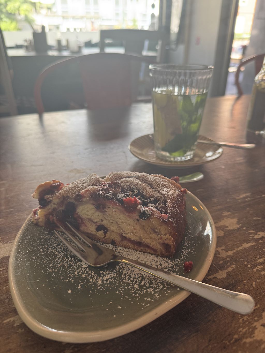Got there for lunch and place was pretty quiet, the lady working there explained to me a bit what she had. I took an avocado/ tomato toast, but as you will see from the picture, it’s a handful! I also had her granny’s homemade potato salad. Both were super delicious and fresh. However what makes it even better than 5 stars is the lady that works there. Her energy is so positive and her laughter contagious. If you are in Duesseldorf, go and give it a try. By the time I left the place was packed. Oh and I also had a piece of the poppyseed cake to go, literally decadent.