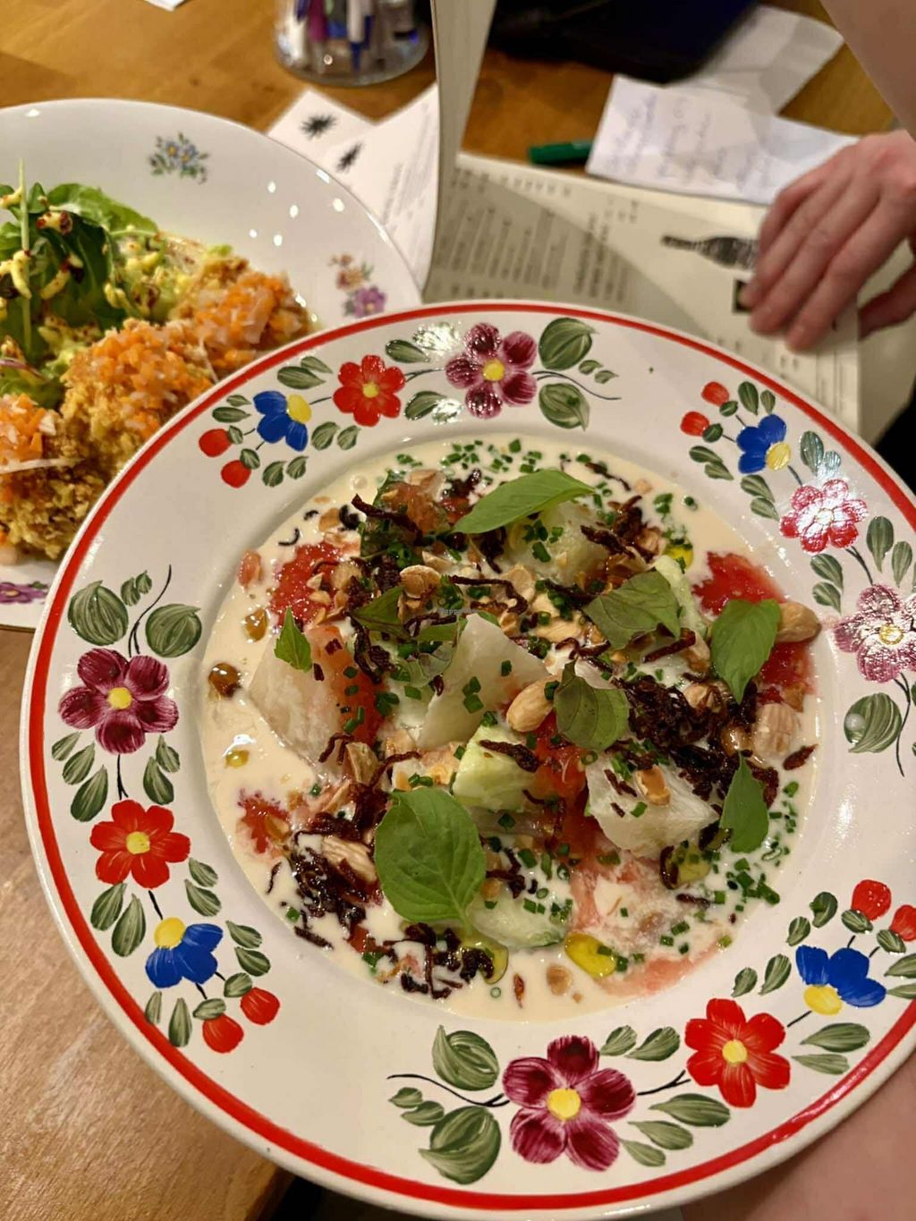 We had the layered cauliflower with beetroot sallad. It was good.
