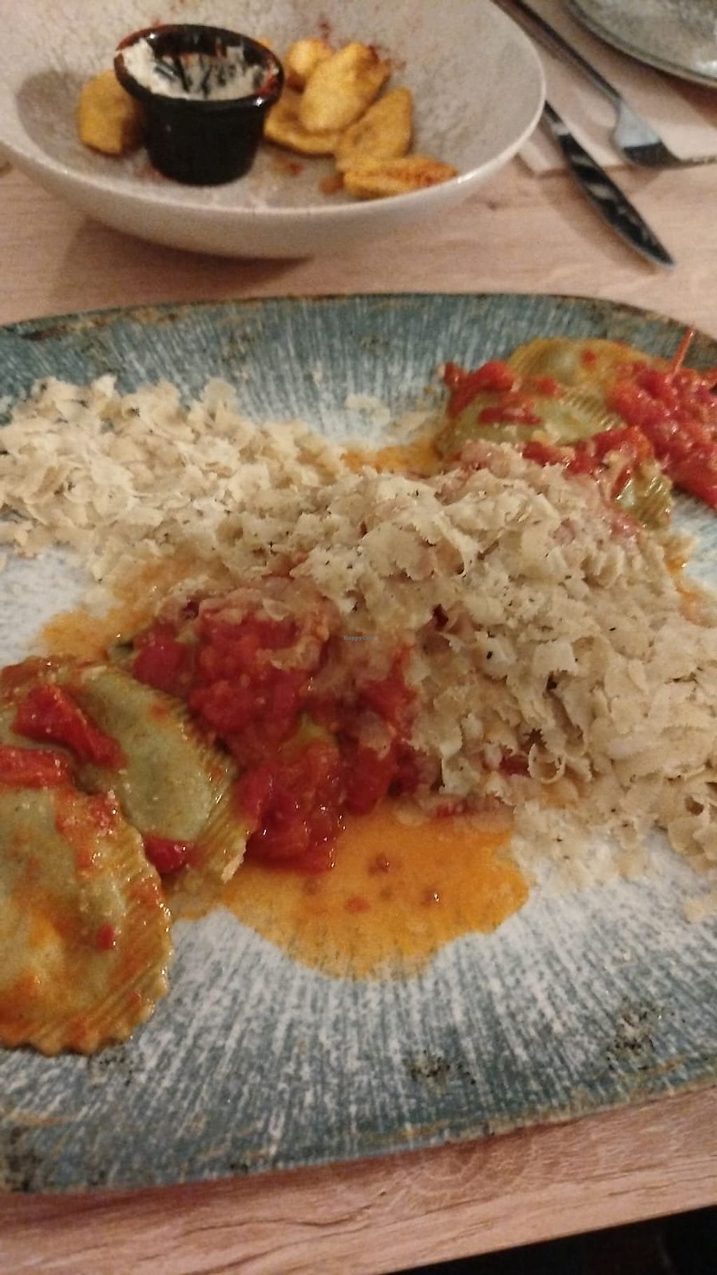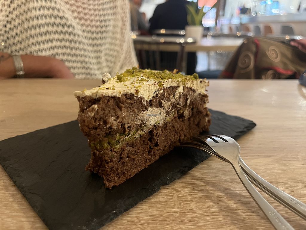 We (two vegans) had lunch at this casual restaurant and enjoyed every bit of it. The menu is mostly based on Italian dishes. I had the ravioli stuffed with pumpkin in a tomato-based sauce. My husband had the pasta in a ragu sauce. We shared a tomato avocado salad that was dressed very simply. We also enjoyed a piece of cake and a croissant for dessert. In general, the food was fresh and light, not fried or like bar food.