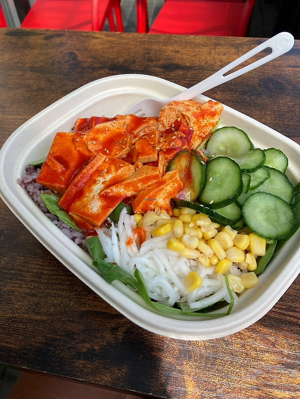 Lacto Ovo Delivery Take-out Korean Non-veg Serves meat, vegan options available. Korean restaurant offering vegan choices such as soft tofu kimchi bowl, japchae noodles, soft tofu soup, purple rice, pickles and kimchi. Open Mon-Thu 11:30am-8:00pm, Fri-Sun 11:30am-8:30pm. More