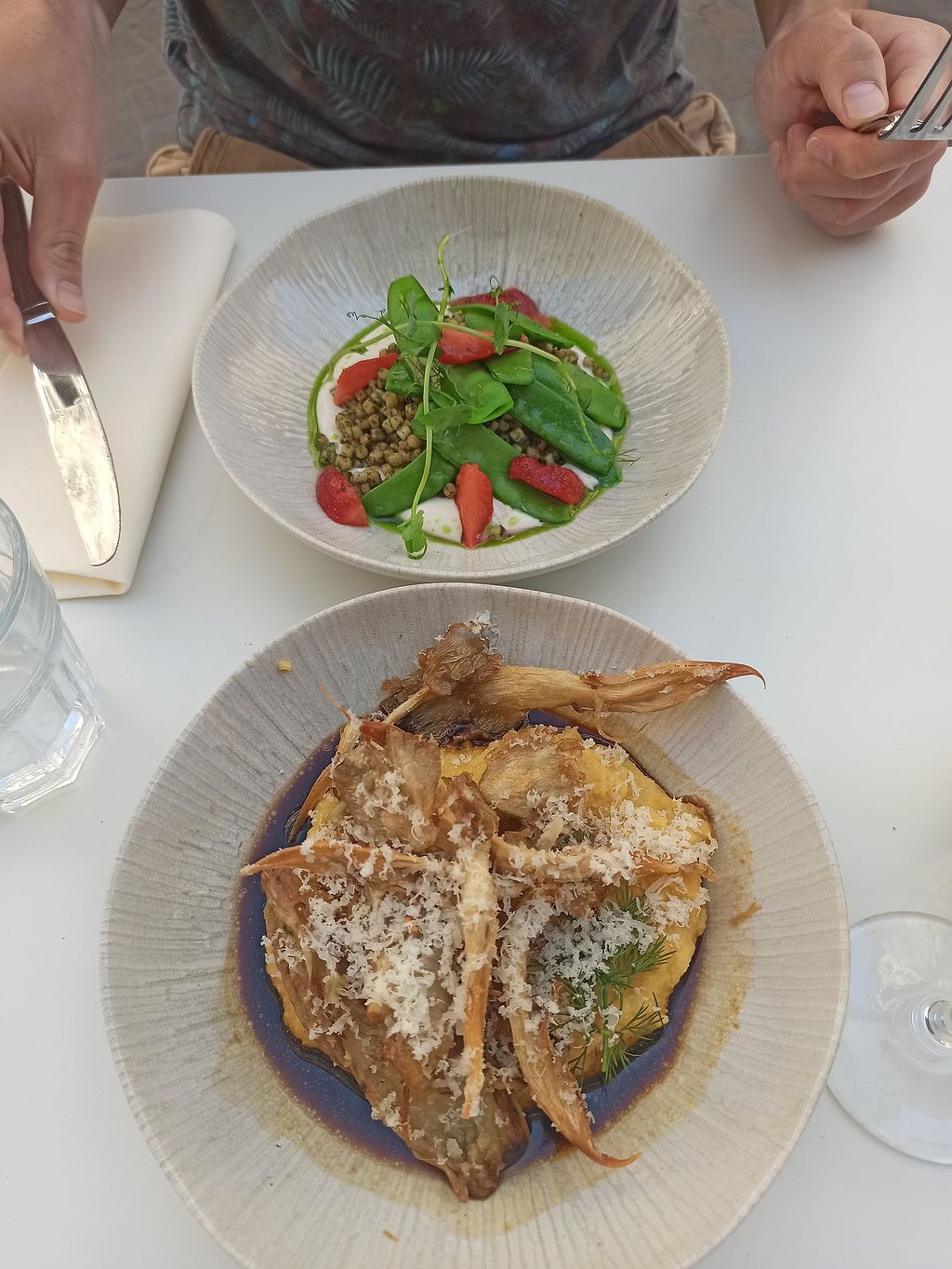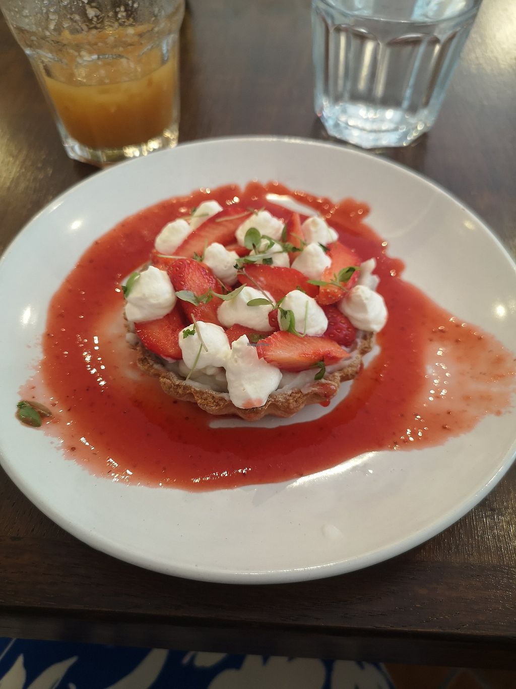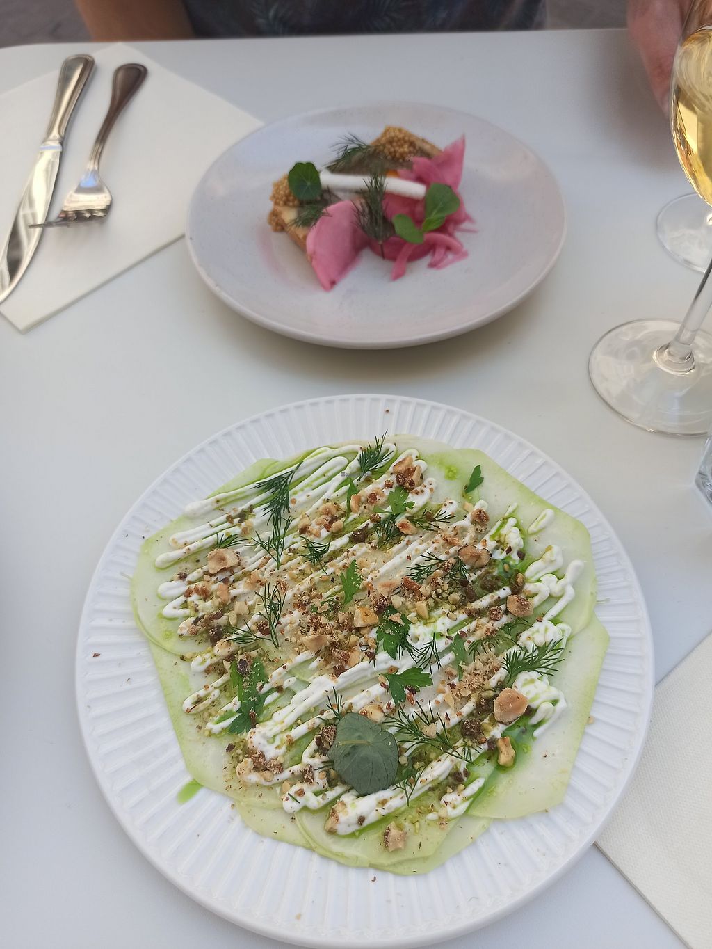 Read moreWith a friend, we had three different (small) plates to share, and it was delicious: salmorejo, aubergine confite et courgette. We then took the cheesecake as a dessert, since the Pavlova was not “in good shape” as we were told. It was ok, but not very tasty, and the texture was a bit too slack.