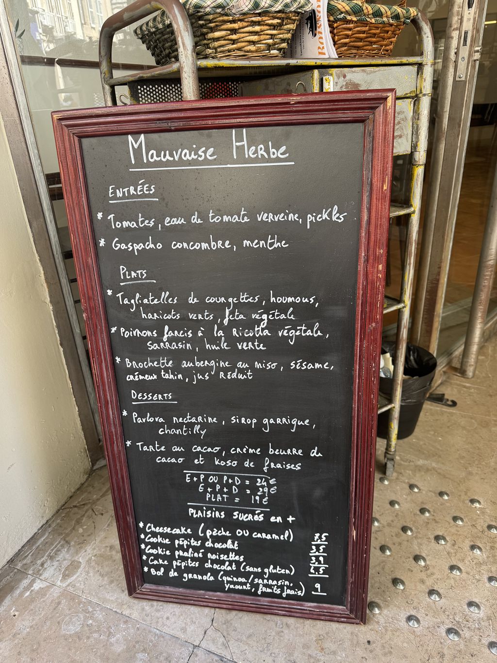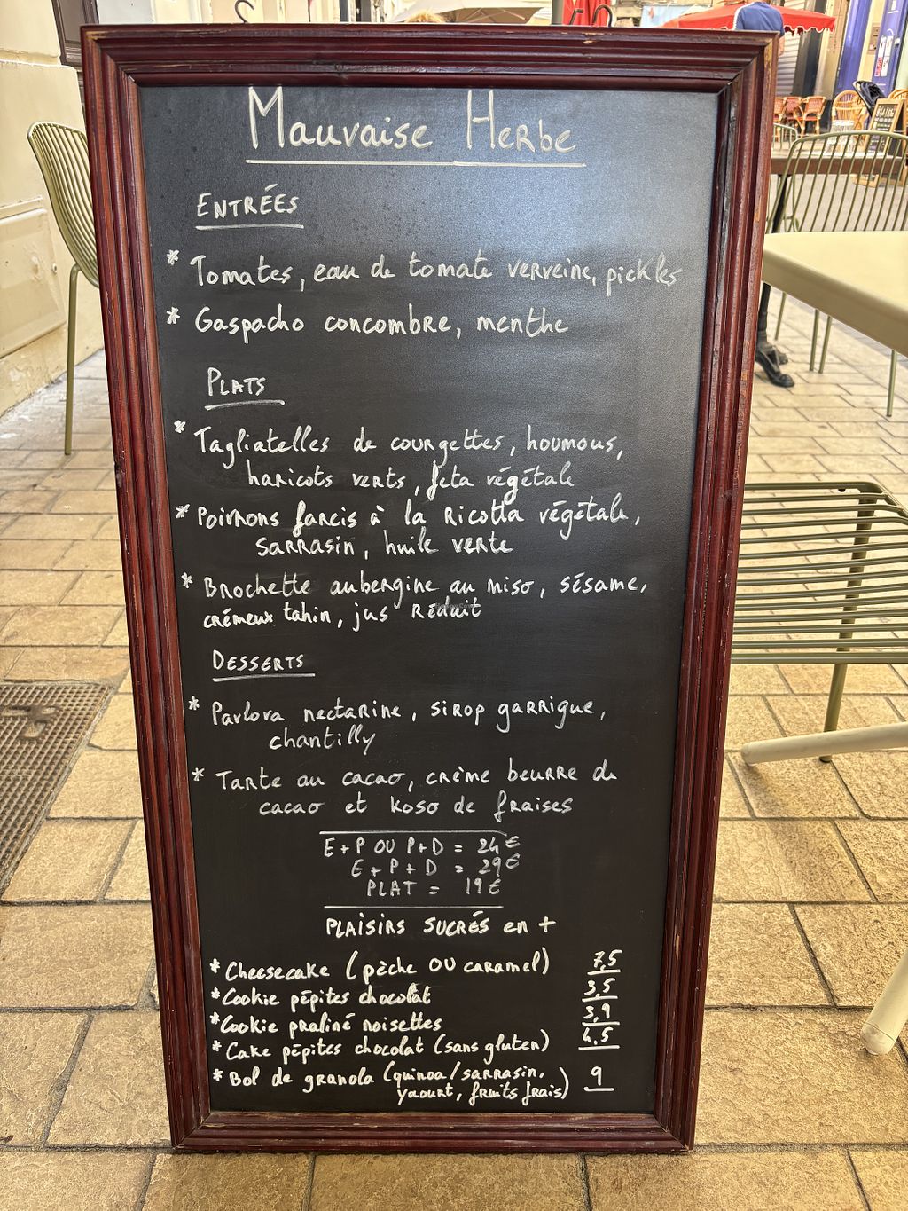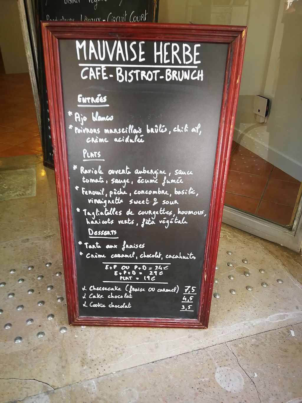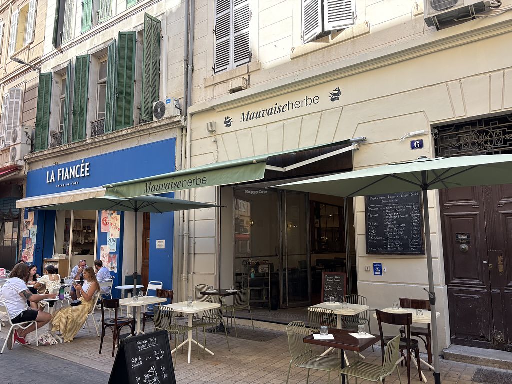 The Mauvaise herbe is a very comfy and classy place, very clean and tidy and has a good menu a la carte. Try the entree soup avione blanc. I liked my plate with fennel and a burrata style plant-based Mozzarella. Also liked the very golden restrooms. For such a comfort it is understandable, that the prices are a bit higher, but in accordance to Marseille per se.
