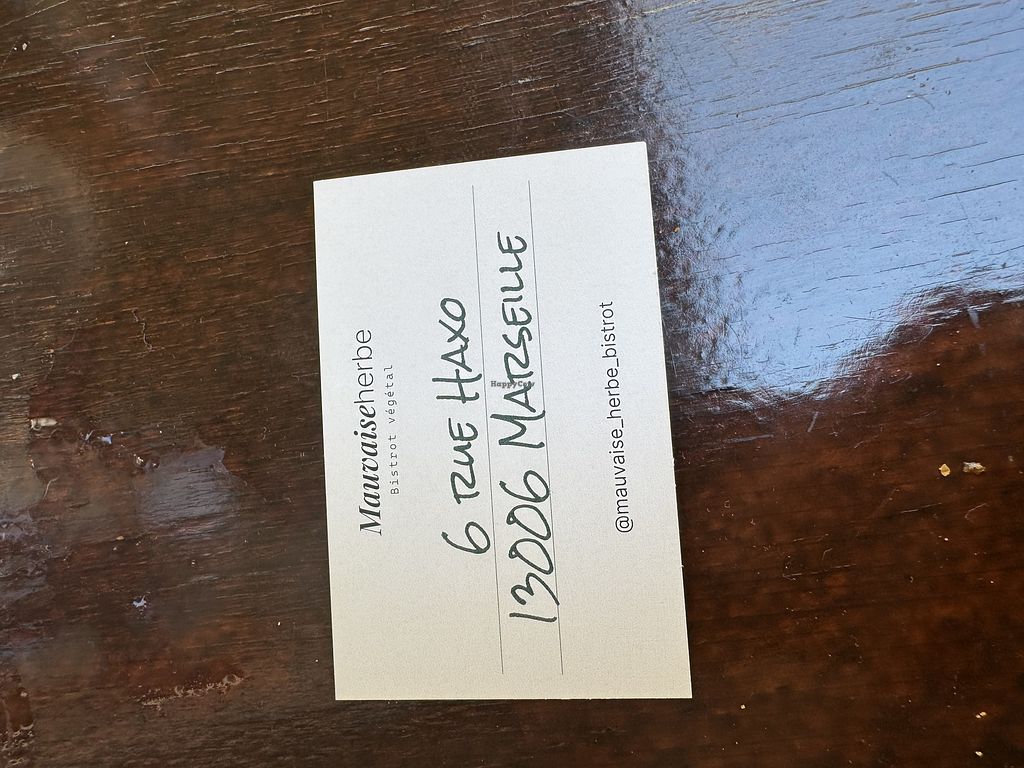 Great attention to details from the choice of decor to the sublime dishes served. We were blown away by the imaginative menu. The staff were welcoming and friendly. We had the best time, sat in the beautiful Marseille sunshine eating, probably the best vegan meal I've ever had! Thank you Mauvaise Herbe! Mission accomplished!