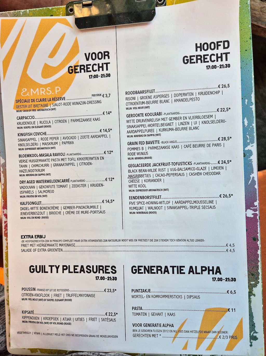 Mr and ms p know how to combine surprising food with very tasty and umami. They have sereval vegan options for each course, and I always have a hard time deciding because they each sound mouth watering. Never been disappointed. As they change the diner card every season we come regularly to try new dishes. They offer not too many dishes, say 5 or 6 per course, and then two of them are vegan. For lunch great homemade veg burger.