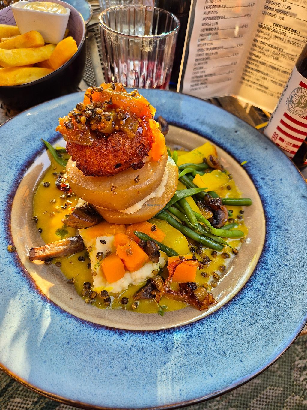 Read moreWe sat at the beautiful cosy terrace at the back. It took a while to get menus but we were pleasantly surprised by the vegan options. We had the 2 started and mains. The starters with ravioli and with watermelon were both very tasty. Texture and presentation were also on point. Same for the main, though the veggie arrangement was the same on both plates. One came with a smoked kholrabi, tasty but I have grown to prefer it raw and crunchy. The other was with the flavourful stuffed onions.