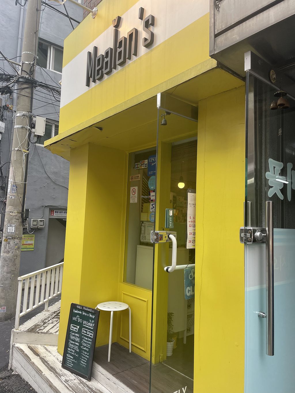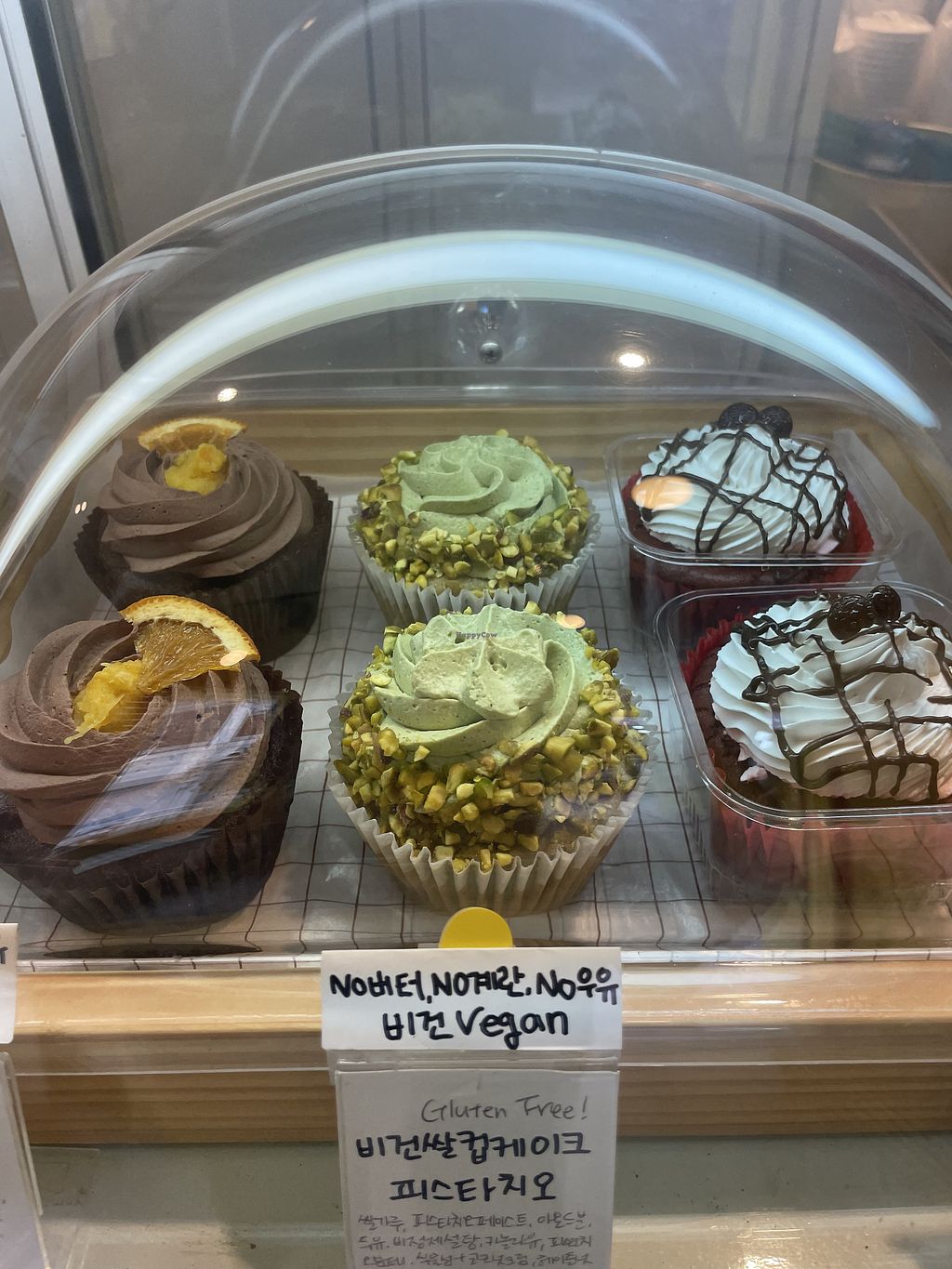 Small bakery offering different kinds of baked goods including vegan cakes such as blueberry cake, kiwi cake, chocolate cake, chocolate matcha cake, and pumpkin cake. Address in Korean: 5, 대흥로28길. Open Tue-Wed 12:00pm-8:00pm, Fri 12:00pm-8:00pm, Sat 12:00pm-6:00pm.