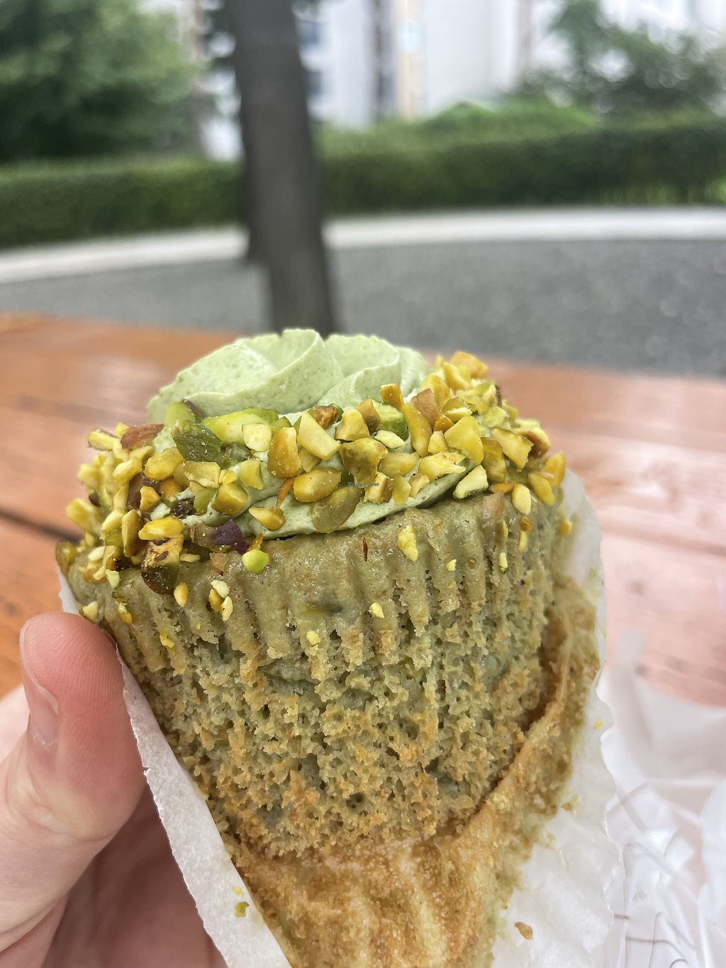 Cream on top was good with pistachio pieces. There was more normal whipped cream inside unfortunately. Base also hardly any taste. Maybe other options are better. At least not sweet. This was a letdown