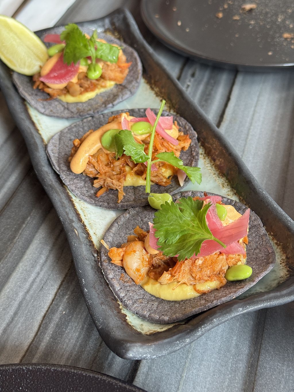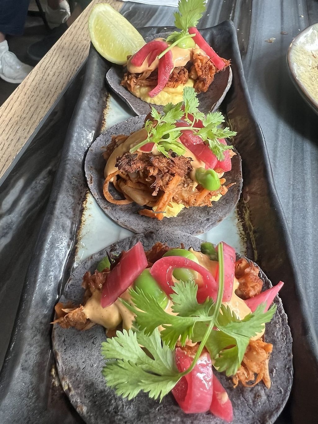 Really didn't know what to expect but I liked it a lot. I was surprised by how good the food was! I tried the tomato lox, gochujang cauliflower, jackfruit tacos, celeriac, and oyster mushroom skewers. Staff was also very friendly and quick. I liked that the food came when it was ready, as it's much more efficient than bringing it all at the same time. At first I thought I'd have to order more as some of the portions seem quite small, but I actually overate even though I have quite a bit appetite.