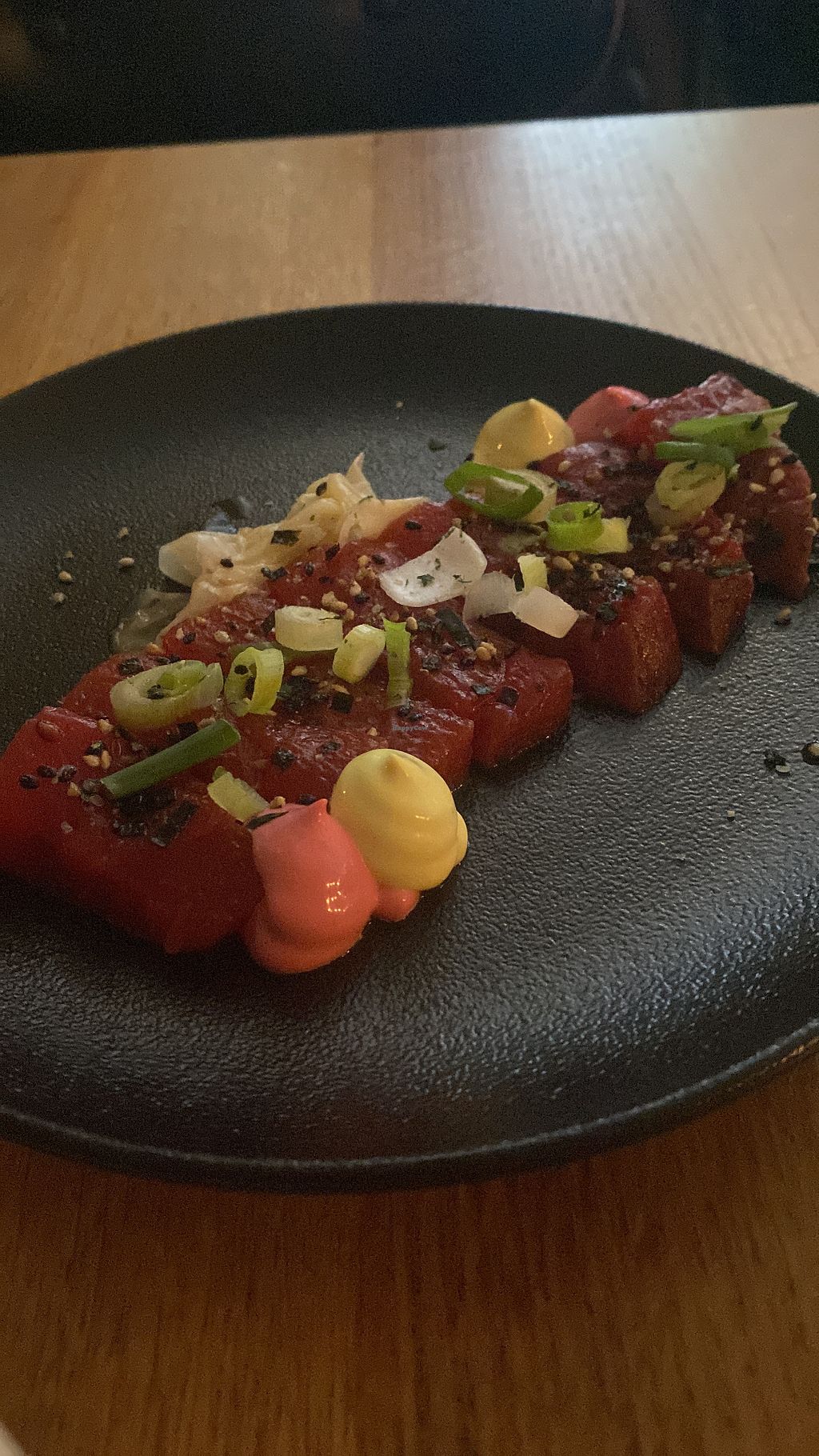 Terrific menu with a lovely, diverse set of plant-forward offerings. Loved the watermelon sashimi in particular, but everything was tasty.