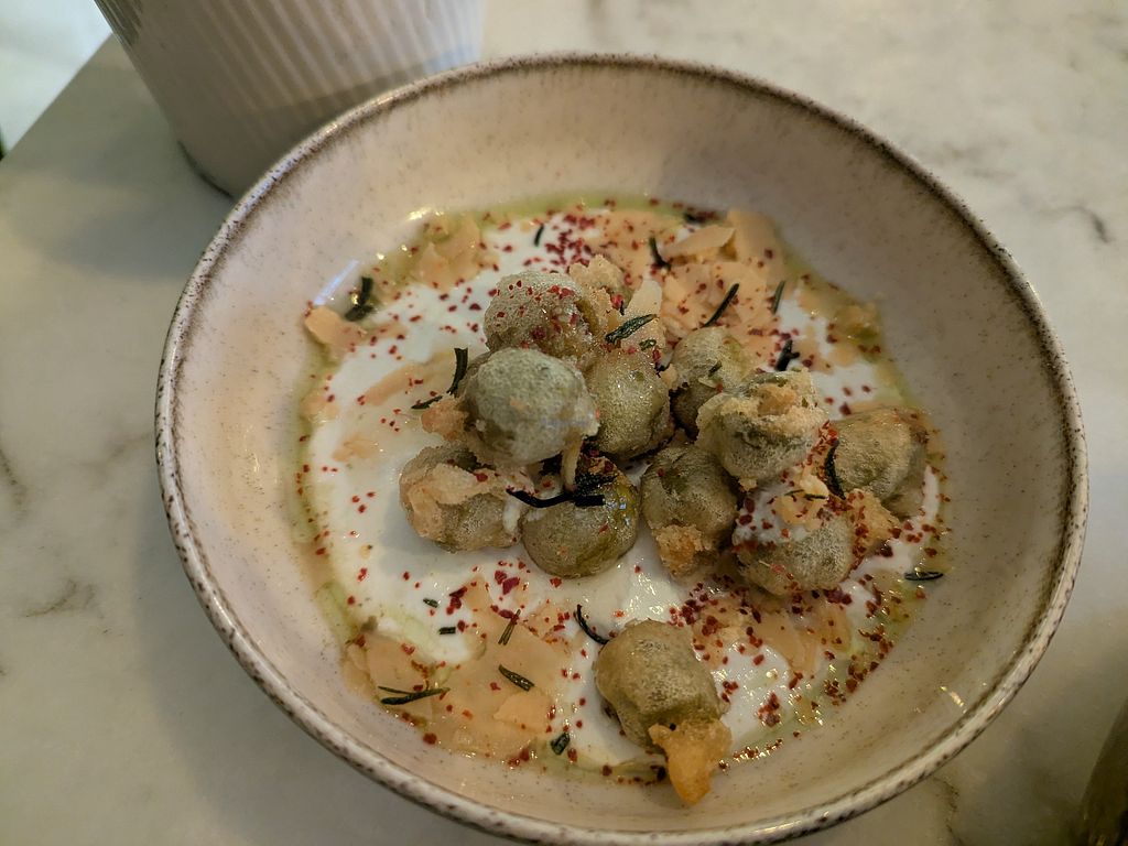Read moreThe Crispy Rosemary Olives as a starter were a real highlight for us: crispy fried, full of flavor, and with the almond ricotta and the miso “parmesan” something truly special.