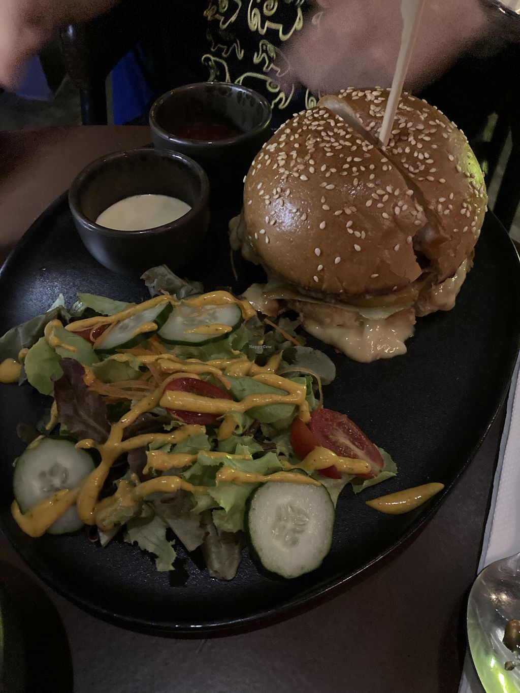 They have live music on Friday & Saturday evenings, but we didn't know so we missed it - we enjoyed our dinner experience nonetheless (if you prefer a quiet dinner, avoid those days). Their menu is extensive and it was difficult to choose what we wanted... I would say the main meals were amazing, although desserts were a bit disappointing in comparison. The waiter explained to us the ethics behind the vegan restaurant (which I felt was more suitable for non-vegans, to educate them on compassion) and showed us the wall of some vegan artists in the music industry. It was quite dark inside with their dim light, we only realised later they had tables outside too. I feel this restaurant offers a completely different atmosphere depending on what day and time you go.
