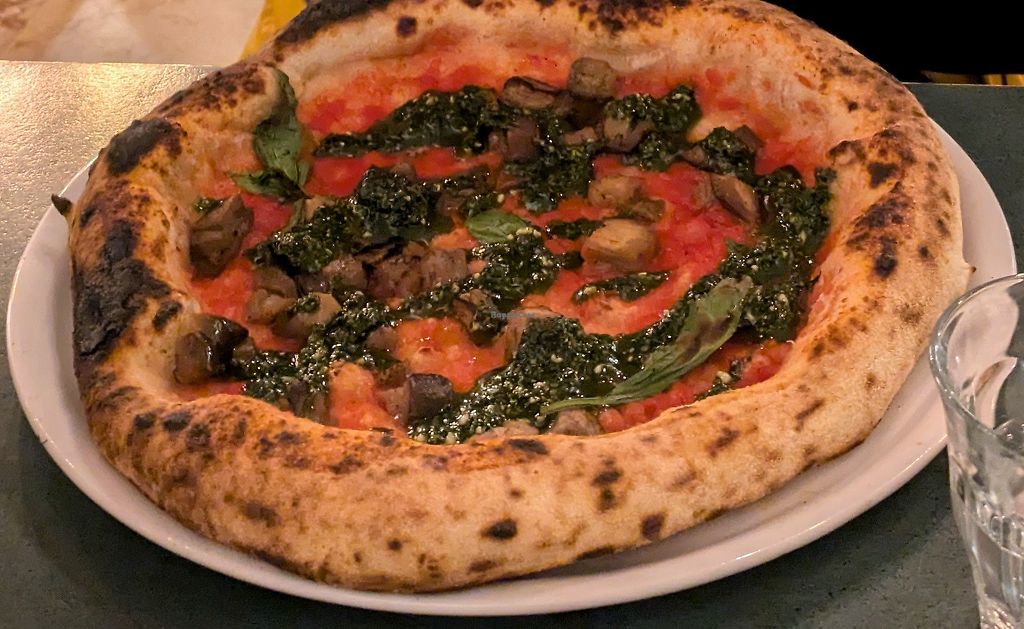 We go to this place occasionally and their pizza never disappoints! They have two pizzas that are vegan by default (marinara and verdura) and are pretty accommodating to requests. Vegan items are for the most part not explicitly labeled but their seasonal ravioli were vegan every time we ordered them. They also had a delicious vegan affogato for dessert!