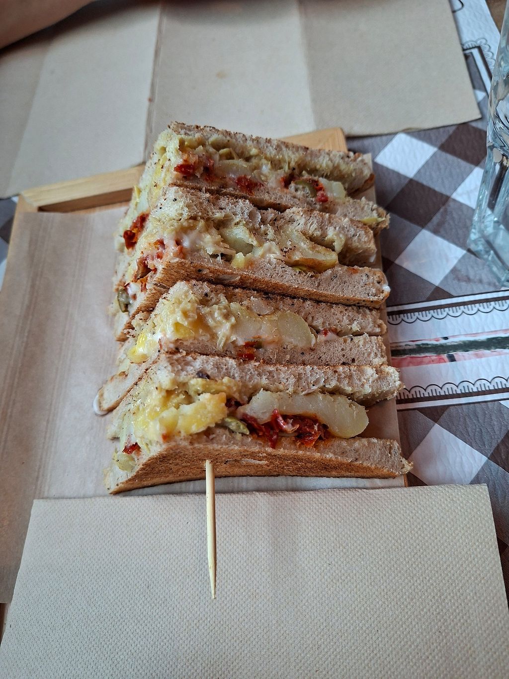 Serves meat, vegan options available. Italian sandwich shop offering clearly labeled vegan choices that include soups, salads, farinata and several toasts. Open Mon-Fri 08:00-00:00, Sat-Sun 09:00-00:00.
