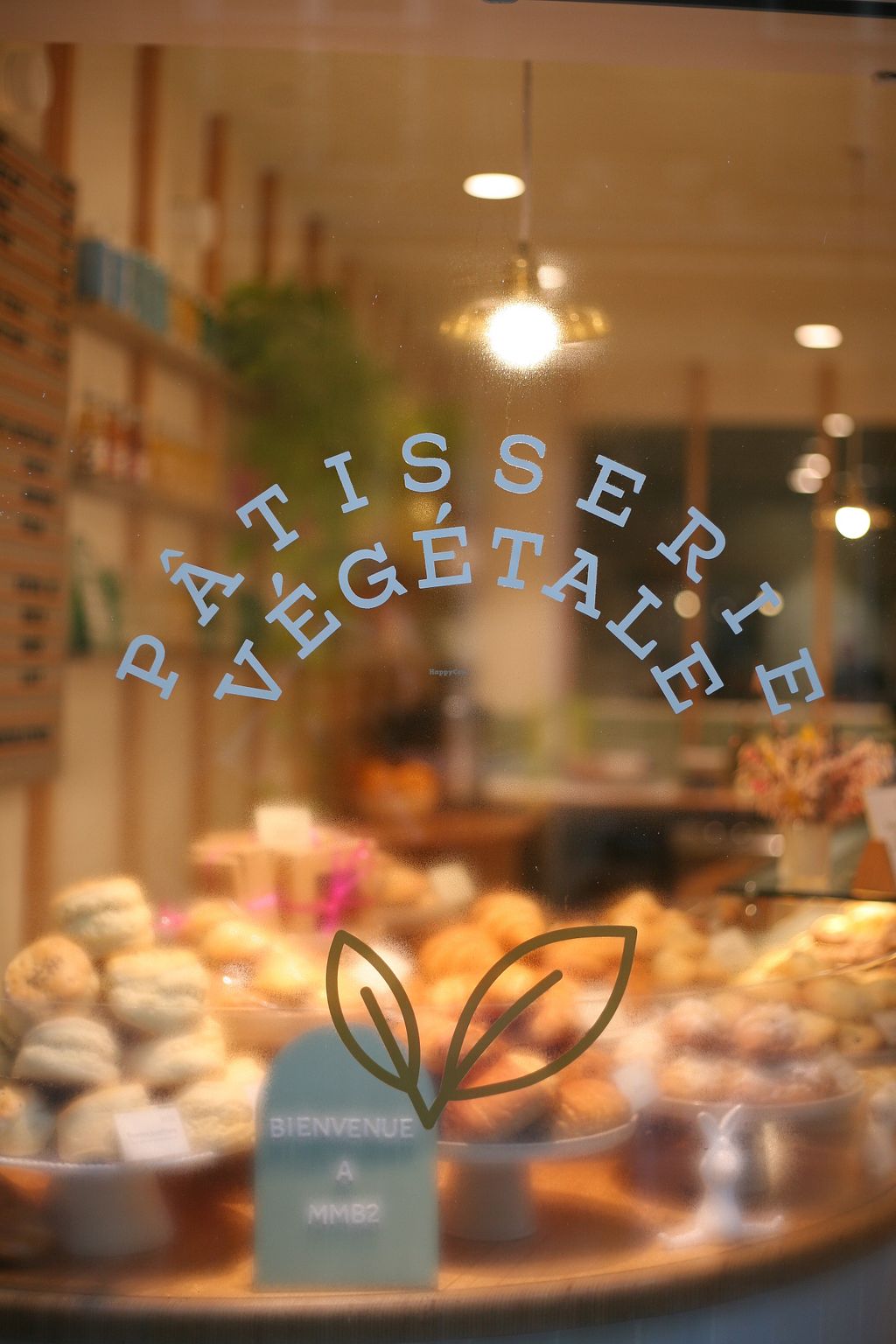 Une boutique décorée à la perfection, avec une vitrine que l'on voit depuis l'extérieur qui affiche avec conviction qu'il s'agit d'une pâtisserie végétale