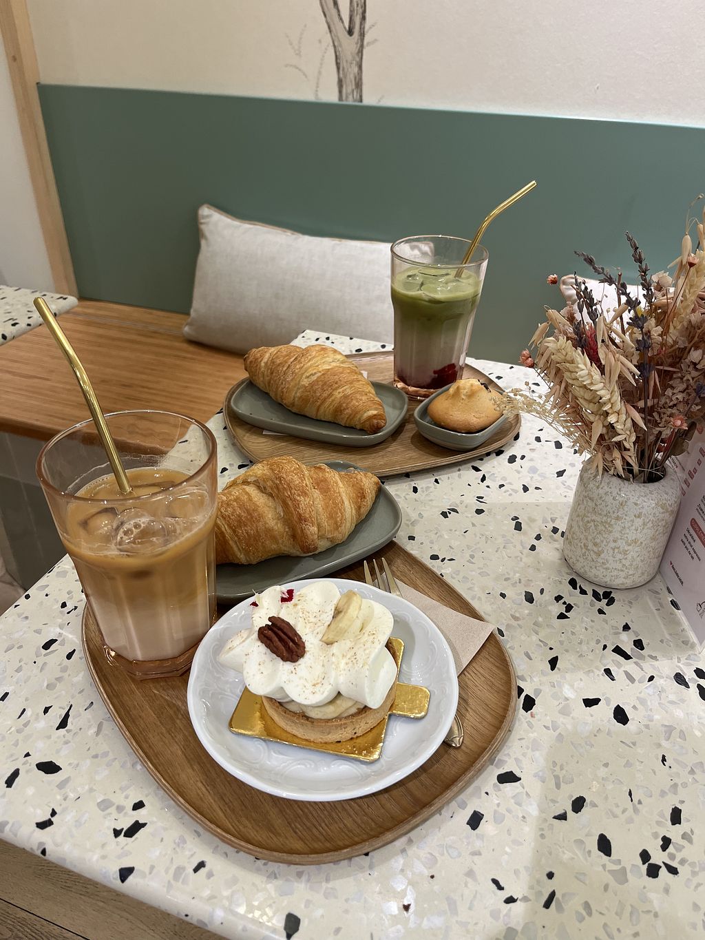 Almond pain au chocolat , mint lemon tarte and iced lattes my favourites.