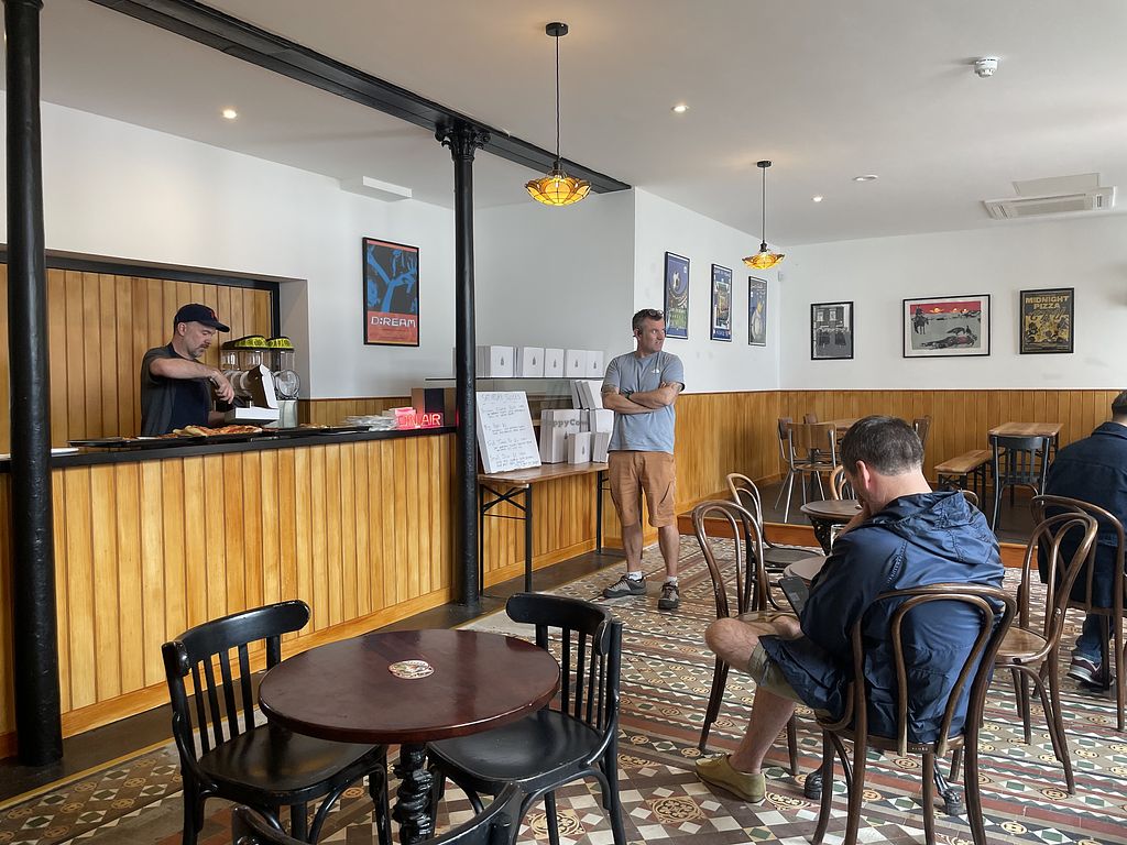Read moreThe restaurant itself has a Parisian street cafe type feel with the most gorgeous original Minton tiled floor & can either be accessed through the pub next door (you can take your pizza slices into the pub if you prefer) or has its own entrance.
