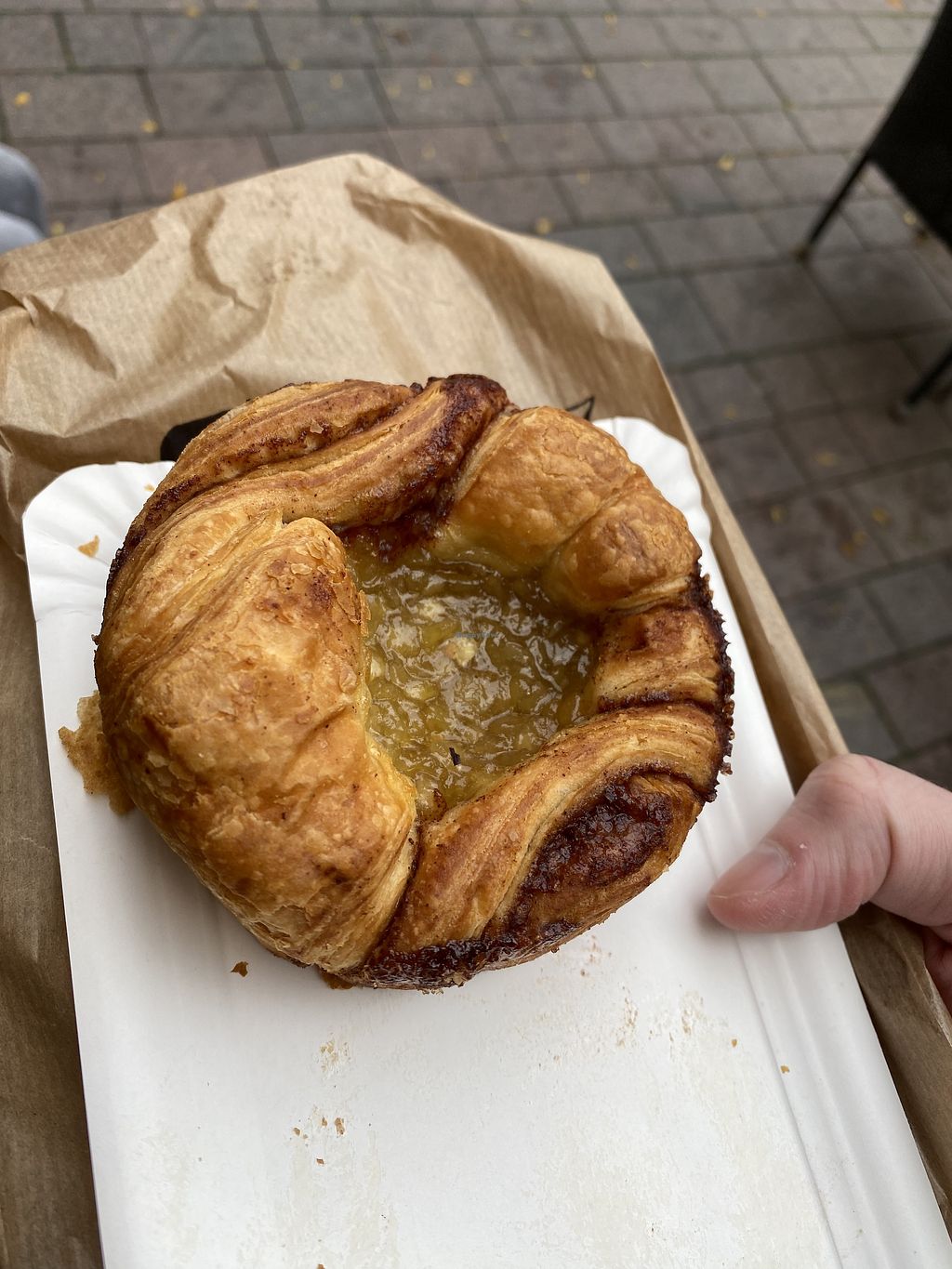 Die Zimtschnecke mit Apfel in der Mitte war sehr gut.