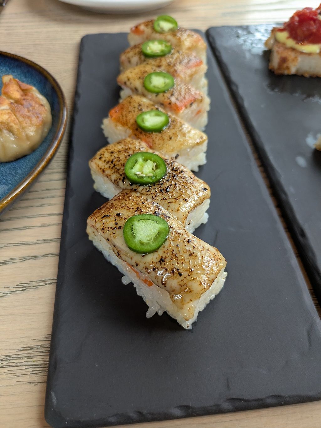 Overall presentation was delightful. Small plates that deliver on taste that actually fill you up. My favorite was the Aburi Lox Oshi; it was quite rich and decadent.