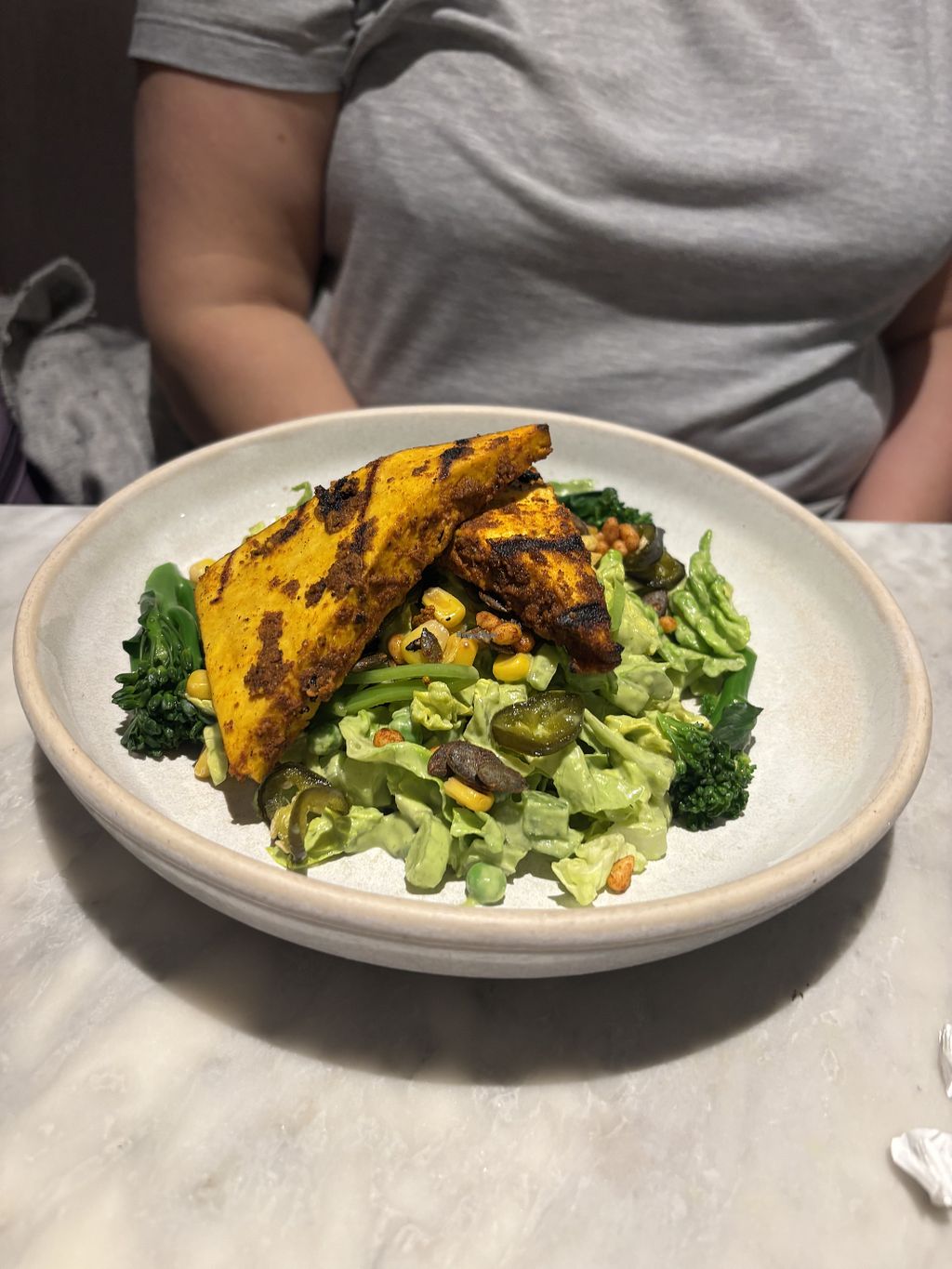 diosa verde salad with blackened sazón tofu steak #Veganuary