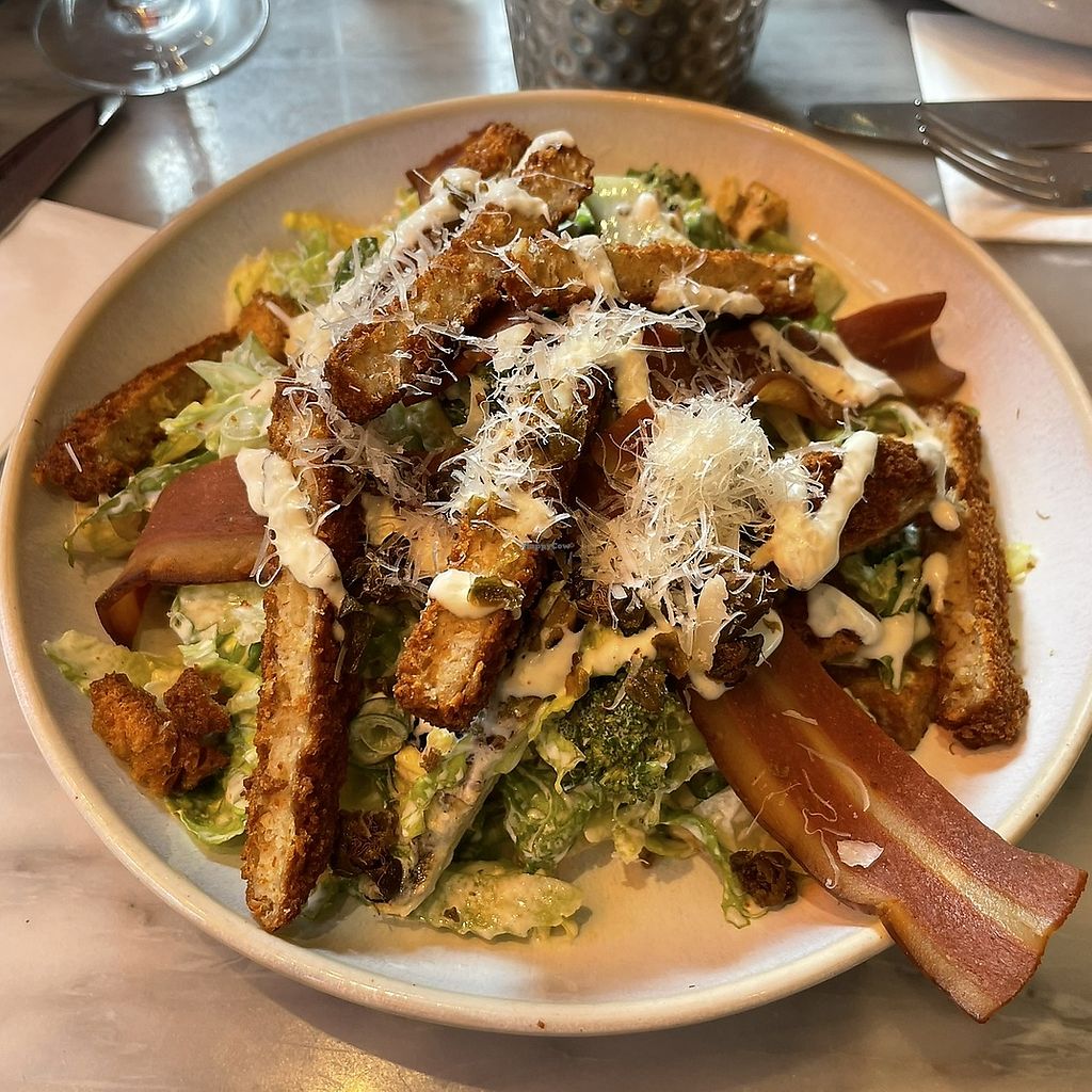Enjoyed the Caesar salad and the blondie cookie dough dessert 😍