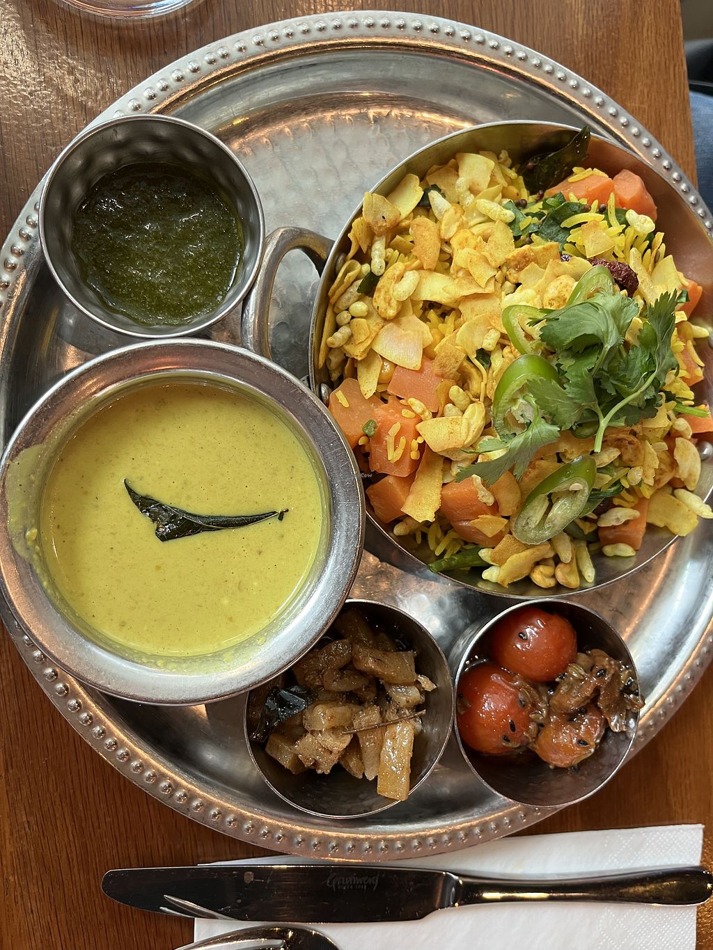Had an early dinner here, essential to book. Had the Sri Lankan pilau with two curries and chutneys. Very tasty and surprisingly hot (spice-wise). Followed with the white chocolate tiramisu - delicious, although rather rich, especially as the portion was generous. Not the cheapest place to eat though - £38 inc 12.5% service charge for two courses and a soft drink. Thats London