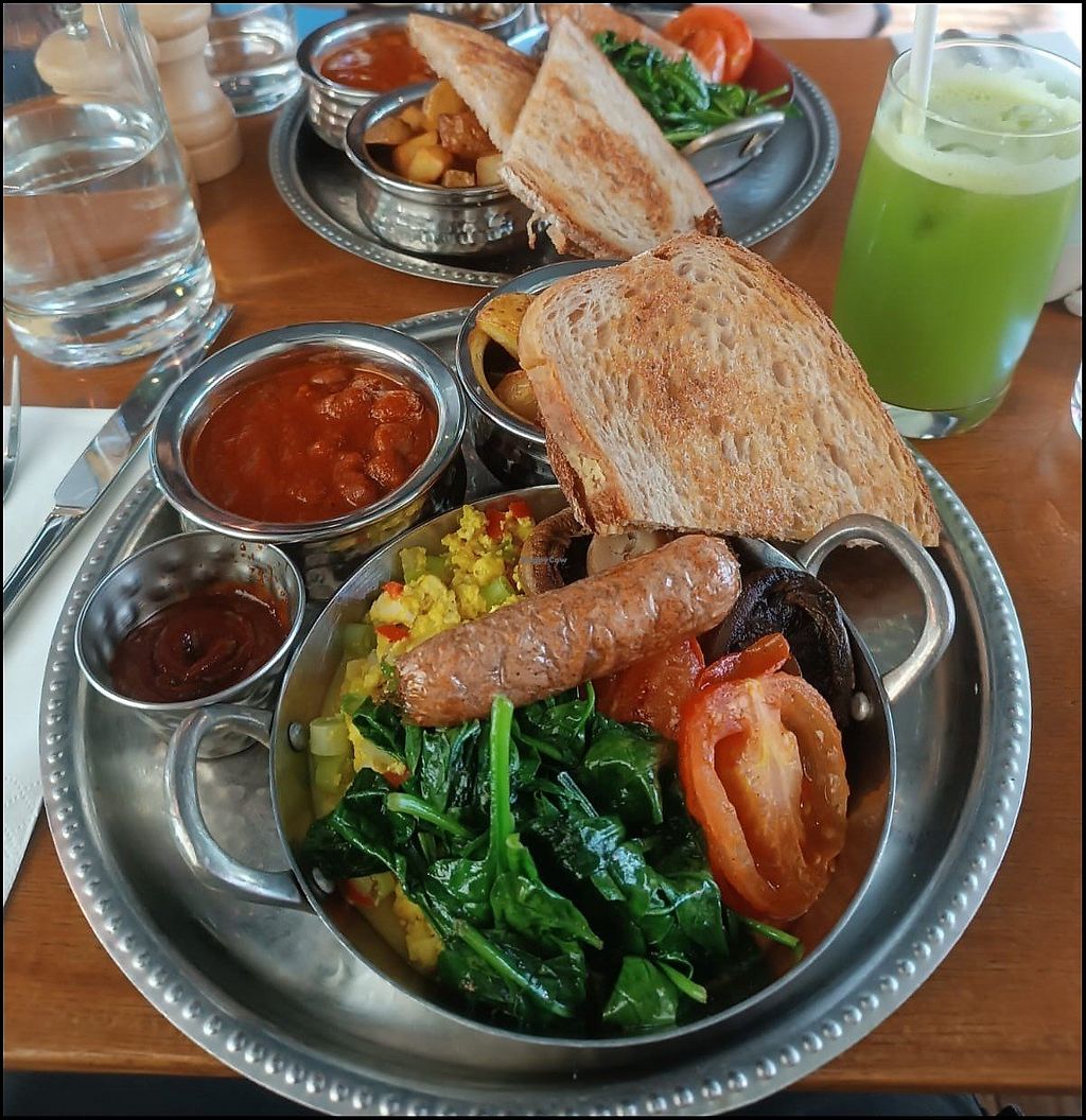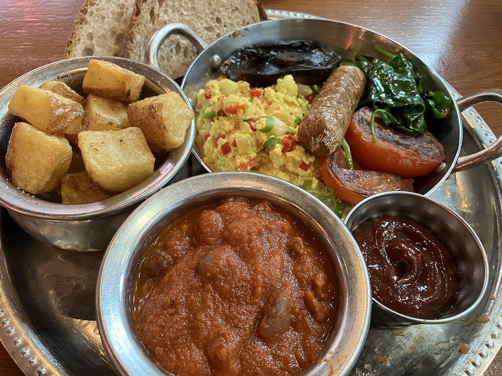 Tried the 'Full English' breakfast. The scramble was too heavy on watery vegetables and too light on the tofu, and the beans tasted more like a mild chili than the sweeter baked beans I'm used to. The home fries were very good, and the sausage was alright. So kind of a mix of good and bad components with this breakfast.