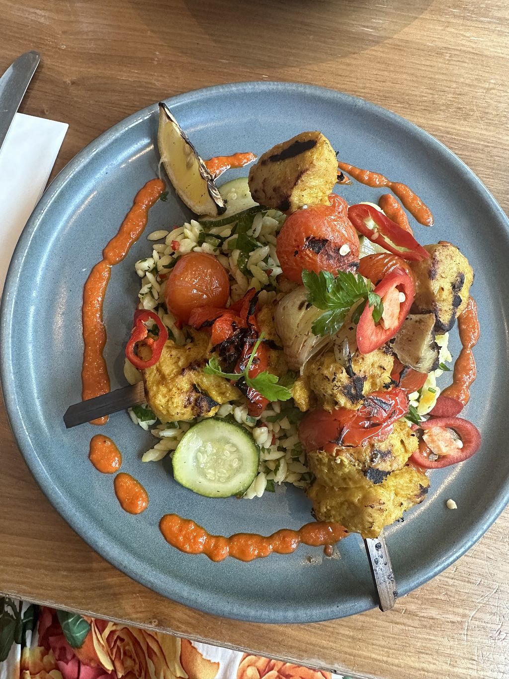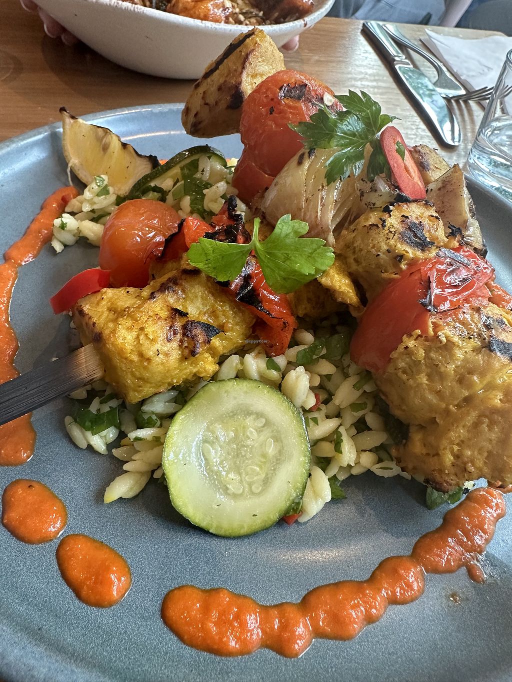 “Chikn” skewer with orzo! Insane