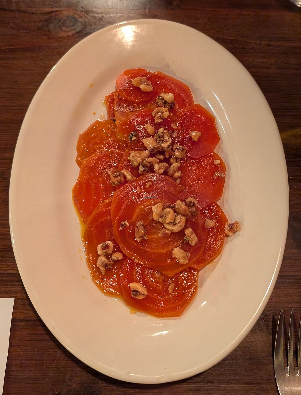 Ordered Roasted Badger Red Flame Beets, Bun Cha, Polenta Gratin, and Cornmeal Crusted Maitake. Ooof, everything was exceptional! It was a lot of food but good split between two. Most plates came out in waves, so it felt like prix fixe without being prix fixe and more customization over what you want. The prix fixe option looked good and seems priced reasonably well. Paired it all with the zero proof Cassia which was splendid!