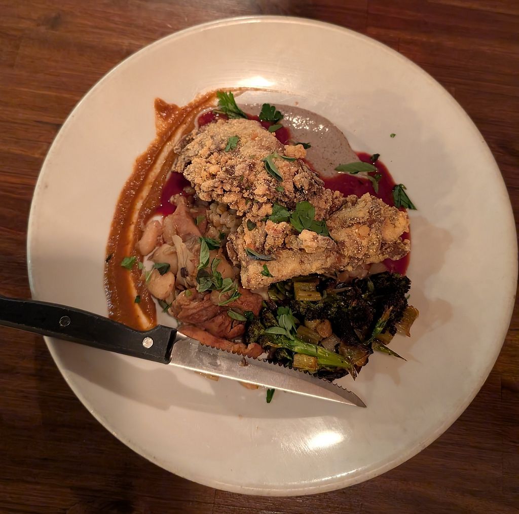 We had dinner here on November 20, 2024. As usual everything was delicious. We started with the crusted oyster mushrooms and little gem salad. Then we had the Korean Barbecue Glazed Tempeh and the Cornmeal Crusted Maitake Mushroom for entrees. For dessert we shared the Mexican Chocolate Torte.