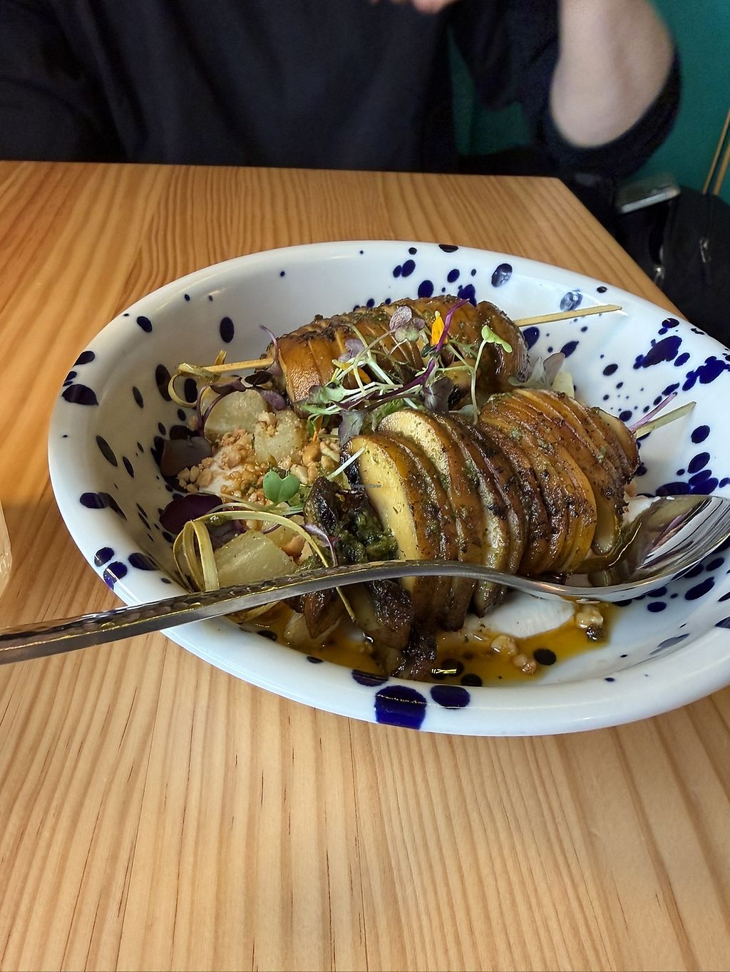 The interior of the restaurant is beautiful, they had a menu that you look up online which I’m usually not a big fan of but it was easy enough to use. I got the beetroot burger and pink lemonade. The burger was delicious and the sauce that came with the potatoes was fantastic! The lemonade was nice, very tart and not too sweet. I also ordered an oat latte which I thought came out more like a flat white, but that was fine. Overall it was a lovely experience and I hope to go again.