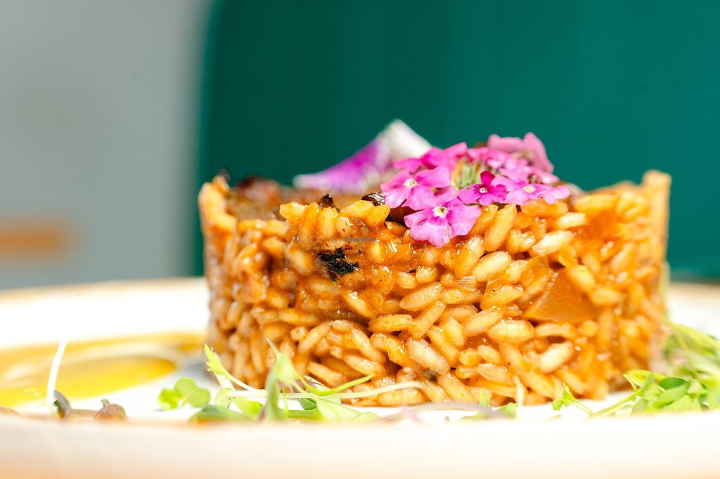 Arroz Mimo Creamy rice with porcini, red onion, and leek, finished …