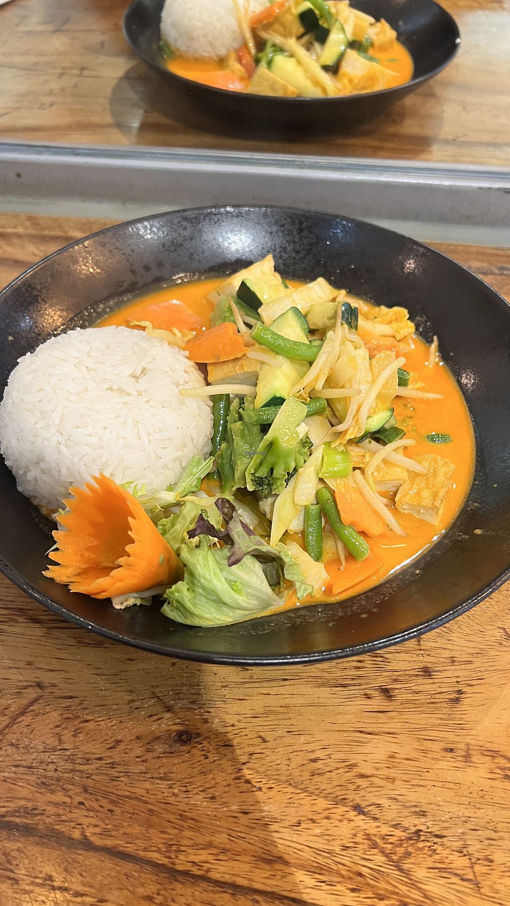 have been here twice and i ordered the Massaman Curry and i love it, it is made freshly and you have many vegan options to chose from!
