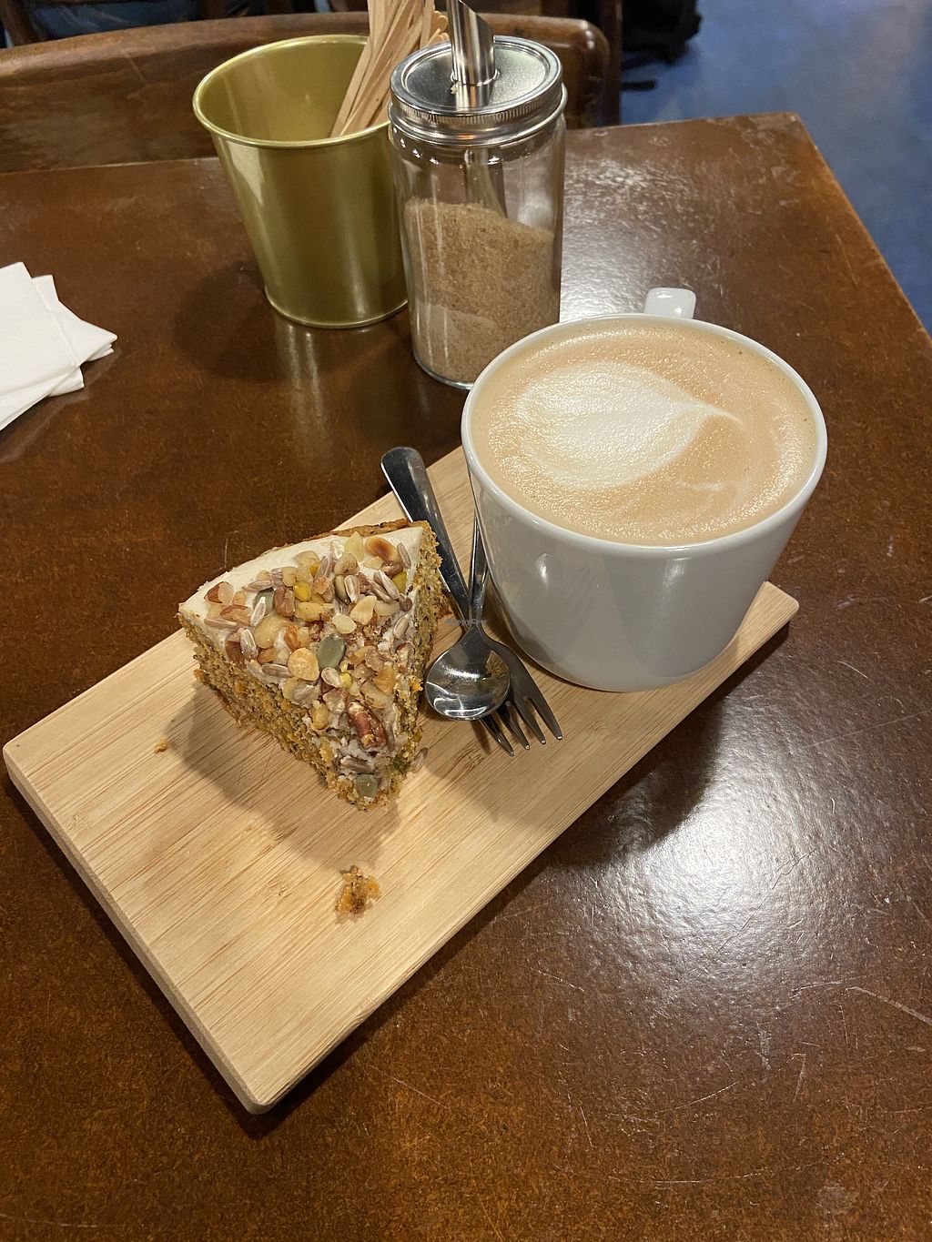 Their hot drinks are very interesting, new combination of flavours, warming and comforting. They also have a variety of vegan cakes and sweets. Would be great to have tables inside the shop.