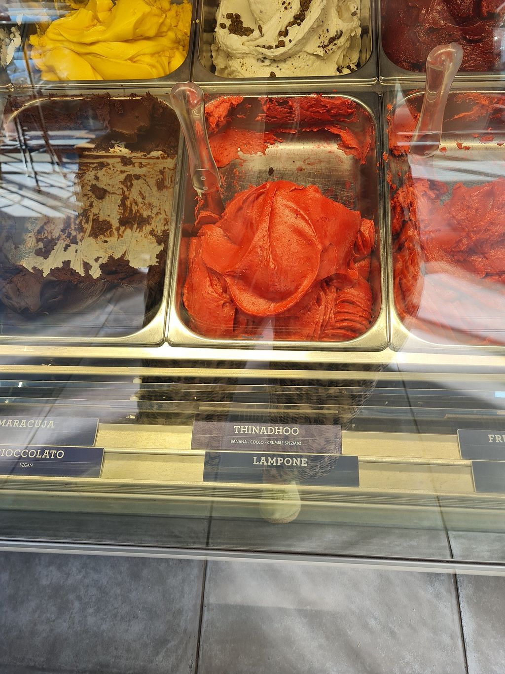 I came here by chance and I found that half flavours are vegan. They have many fruit sorbets but also cream flavours such as pistachio and chocolate. I tried pistachio and banana/coconut with spiced crumble. Both were very good. Also the cone was good and it was tasty. I would have given 4 stars if there were more vegan cream flavours . Staff is nice and price is average for Milano: 3.5 euros for 2 flavour-cone.