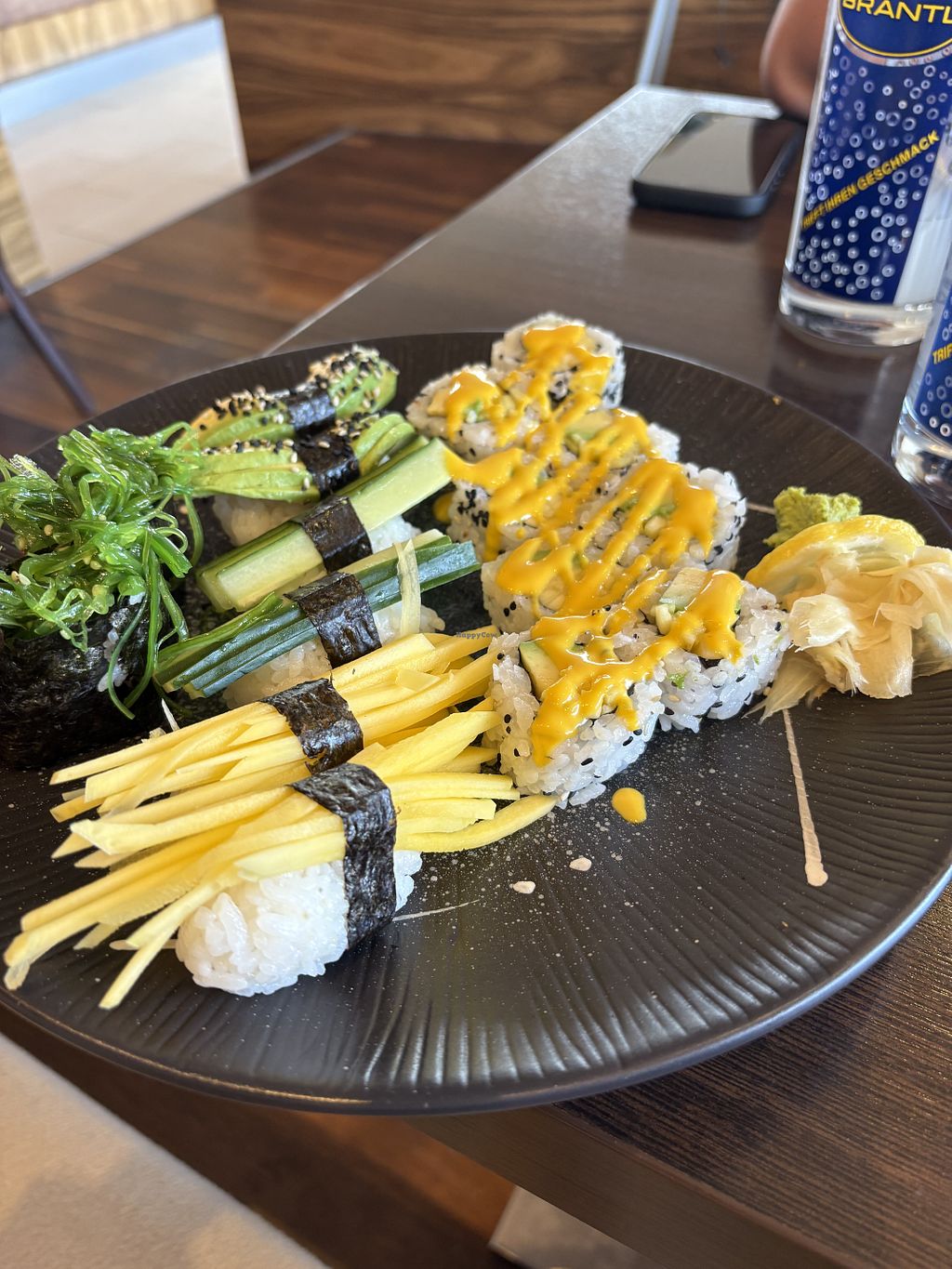 Einige vegane Optionen. Sehr frisch und geschmacklich sehr gut. Reichlich große Portionen