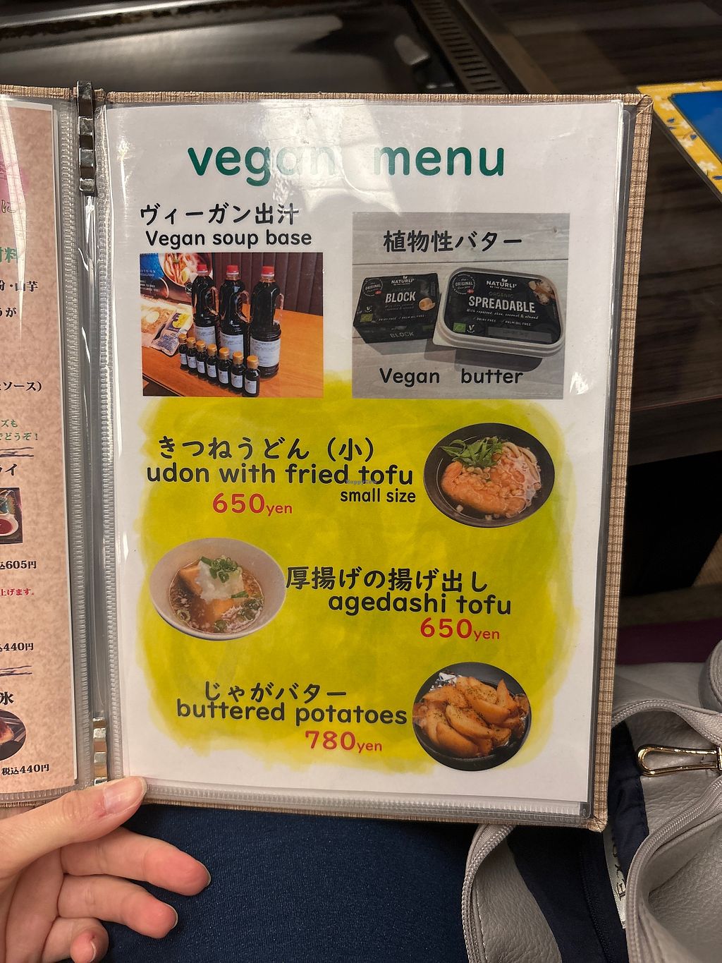 There is a whole vegan page in the menu. However, it’s only in japanese and the staff also did not know English. But with the help of google translate we were able to order and communicate with the very friendly staff. The vegan okonomiyaki was amazing and absolutely delicious.