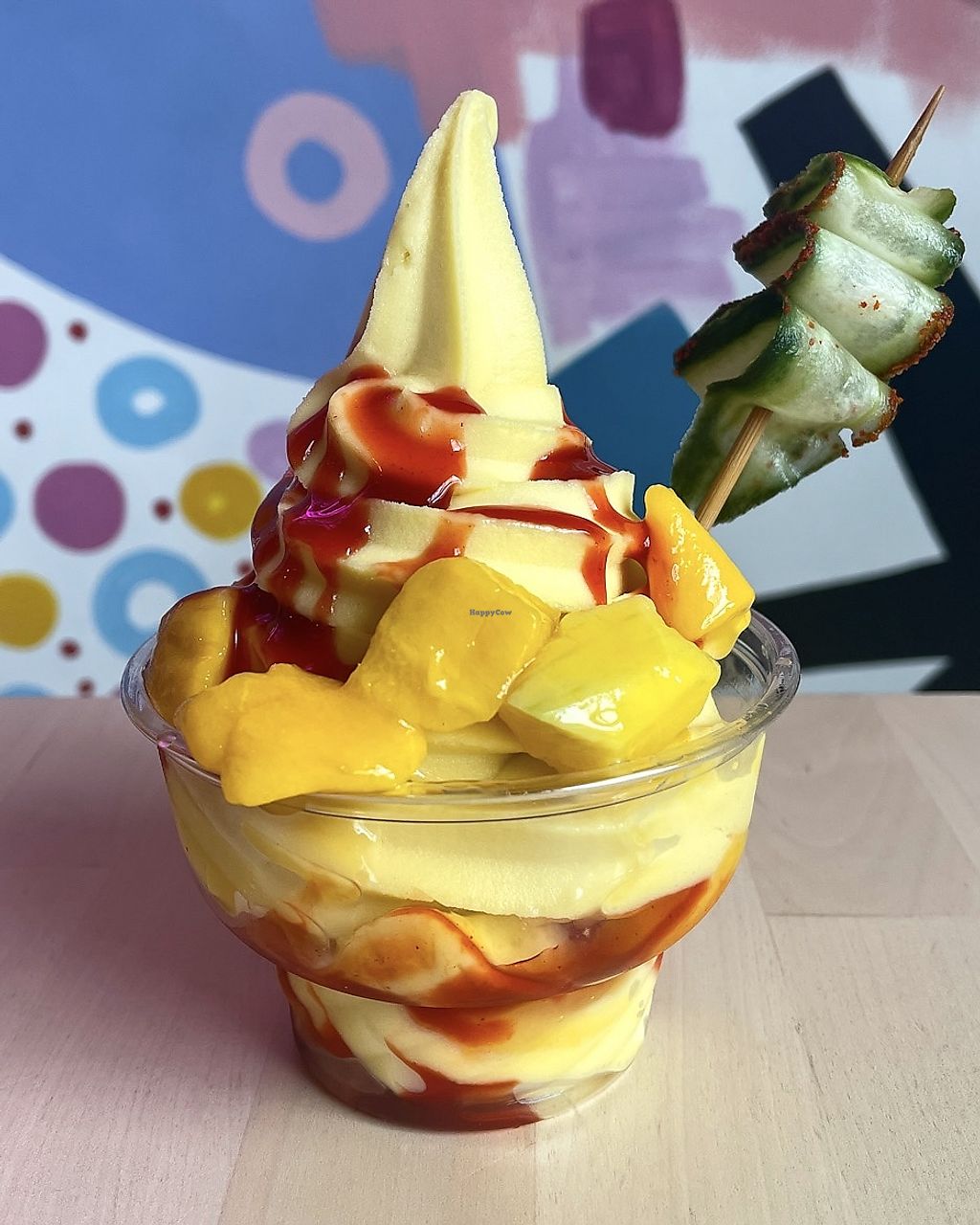 Cute shop with two vegan soft serve flavors, plus lots of vegan topping options and a vegan cone. A+ for all of this, but the soft serve was kind of disappointing. Weird sorbet-like consistency, not creamy at all.