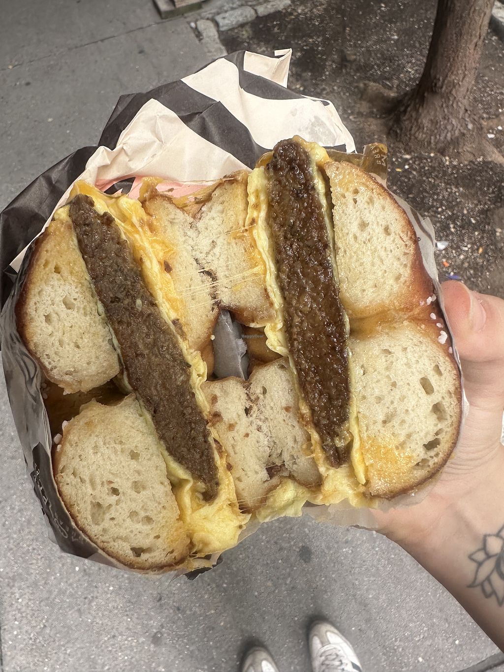 i always walk by this place and knew they had a lot of vegan options so had been wanting to try it out for a while, and i wish i hadn’t waited so long. i got their pretzel bagel (august special) with vegan sausage, egg, and cheese, and it was love at first bite. i will be back.