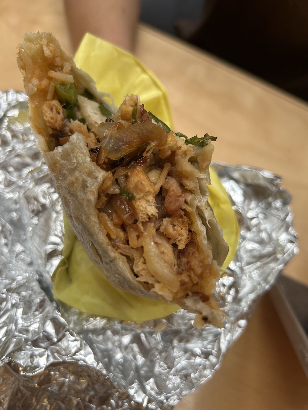 I went here with my partner and was super impressed! They have a decent amount of vegan options to choose from with different protein options. The person at the counter was very mindful of us being vegan and let us know the drink we ordered had dairy in it, and offered an alternative. I highly recommend eating here, very tasty affordable and vegan friendly!