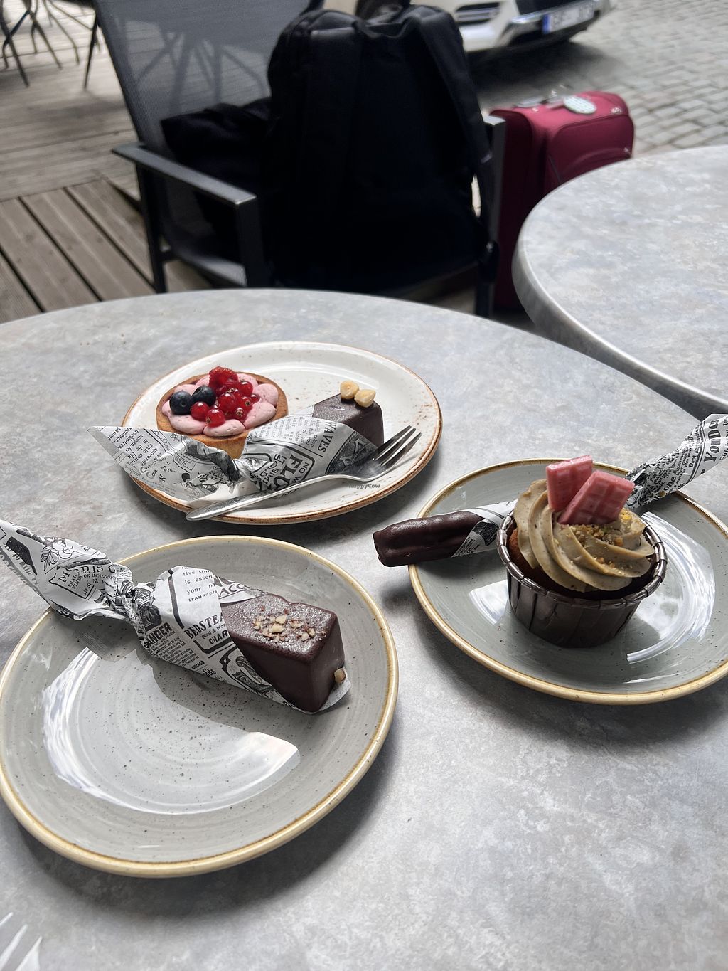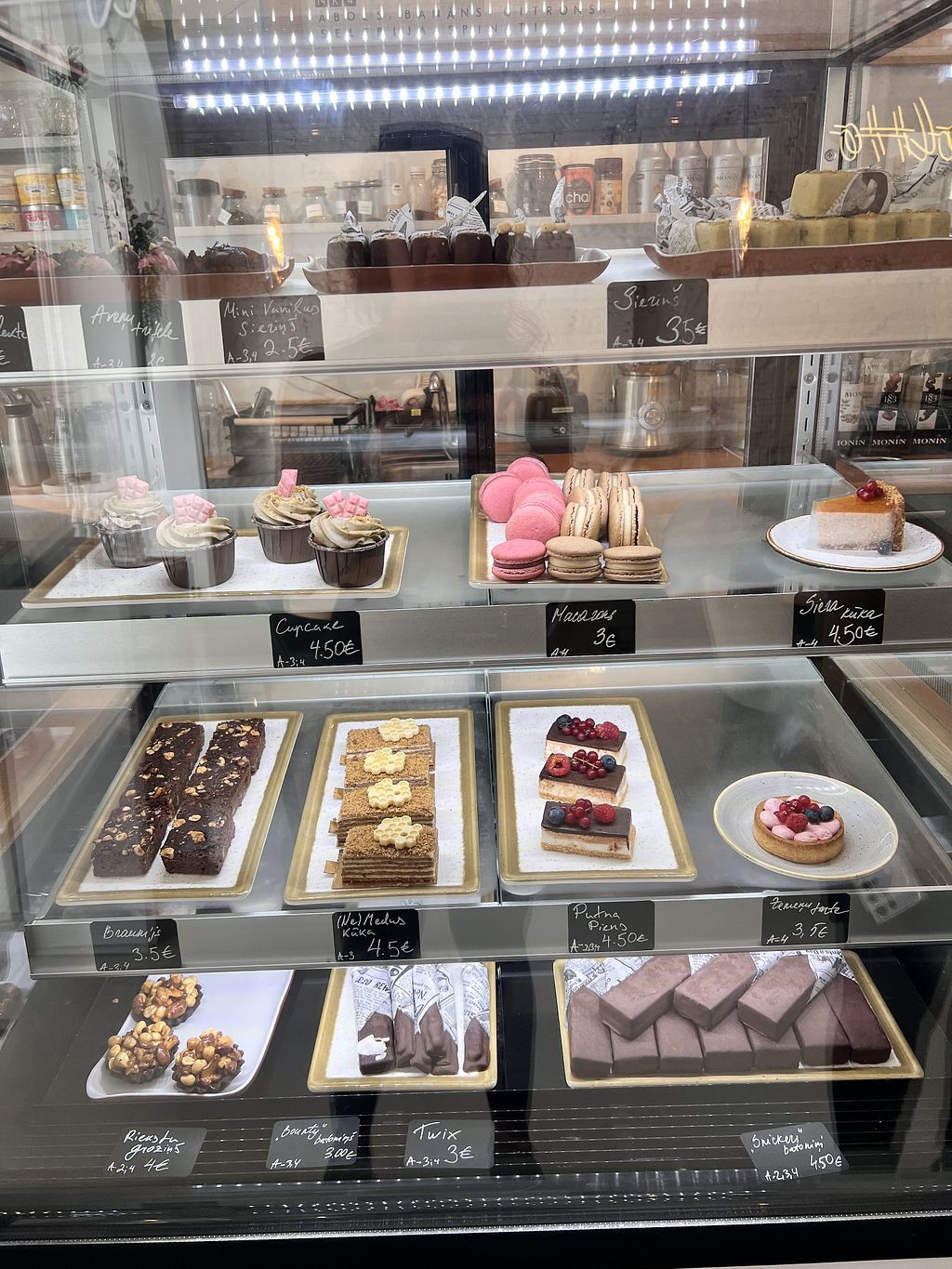 All the cakes here are vegan! A much welcomed rest stop after a rainy morning exploring Riga 😁