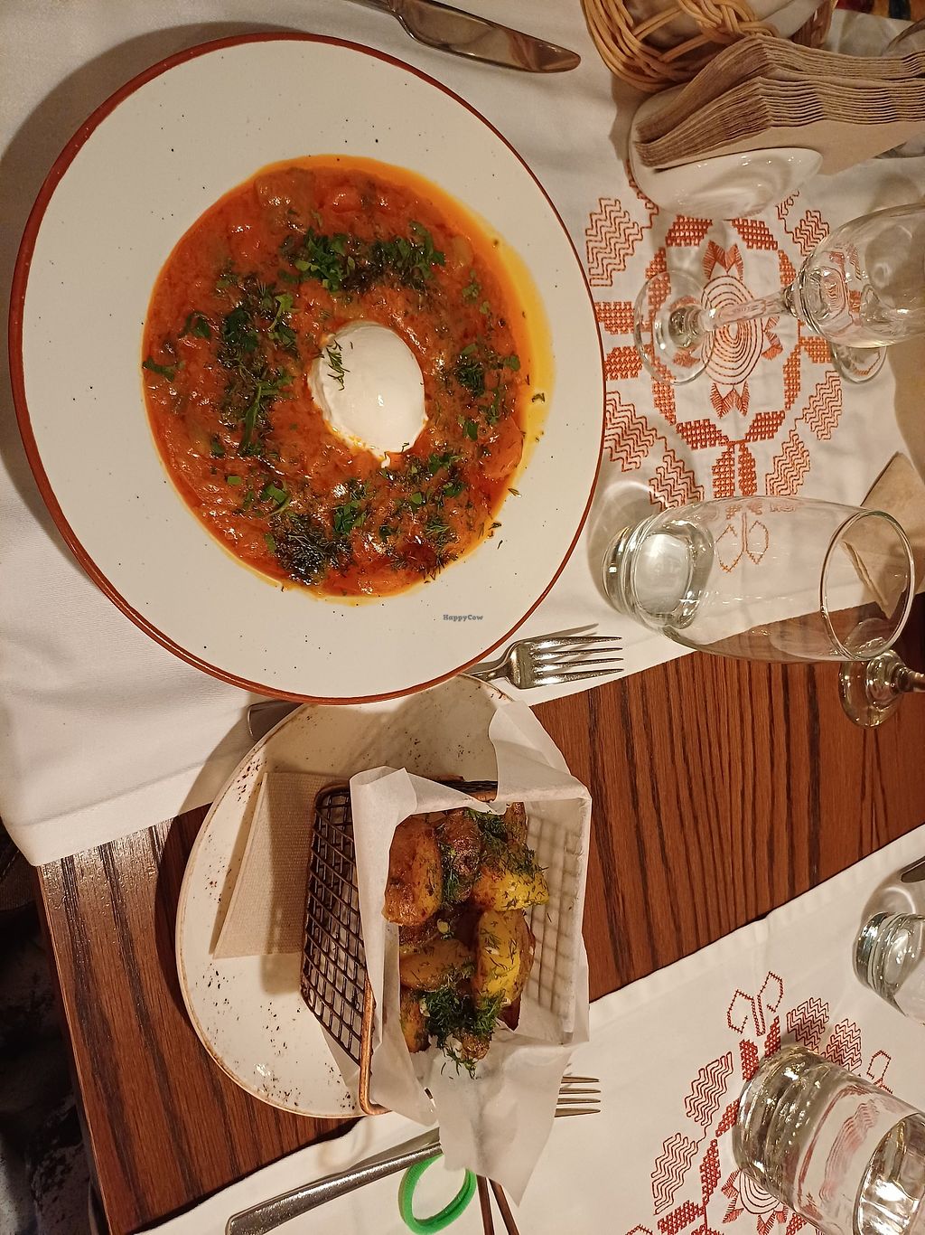 It was nice to try bulgarian food and wine. Not many options but There was one vegan dish which was nice; stuffed vegetables. A bit pricier and maybe not mindblowing but i enjoyed trying traditional food of Bulgaria.