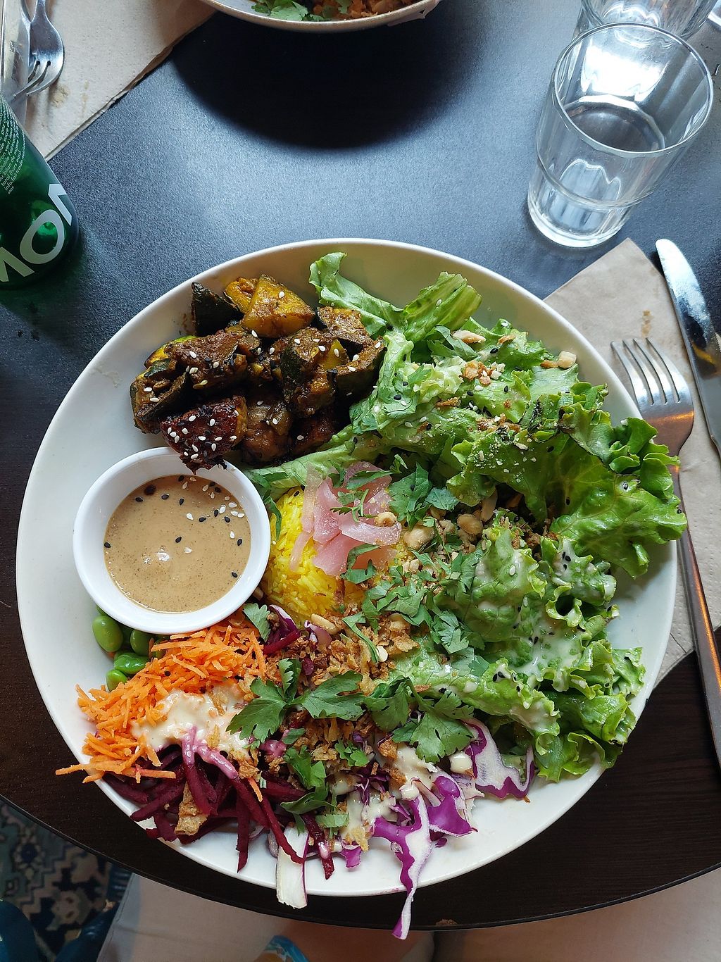 Ein sehr leckeres (und nettes) Restaurant an einer süßen Straßenecke in Bordeaux. Wir hatten das Chicken Nasi Goreng und den Tempeh - beider super lecker. Dazu einen veganen Mango Lassi und eine Kurkuma-Ingwer-Limo - yummy!!