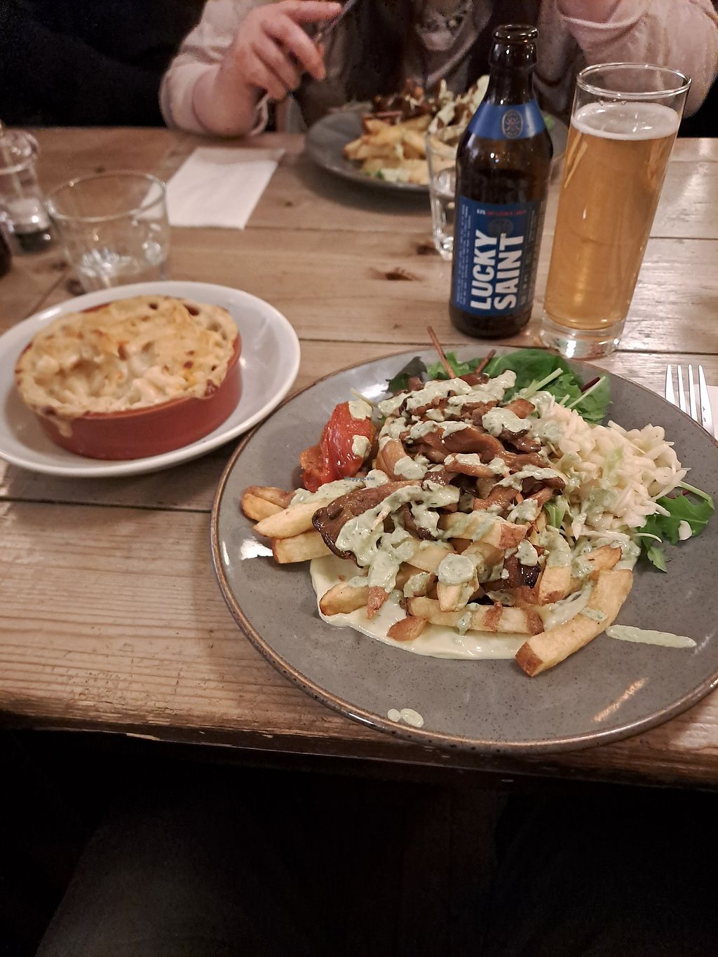Lots of lovely vegan options and great drinks menu. We both had the macaroni cheese, one topped with haggis. They were delicious. S'more doughnut pudding was amazing too.