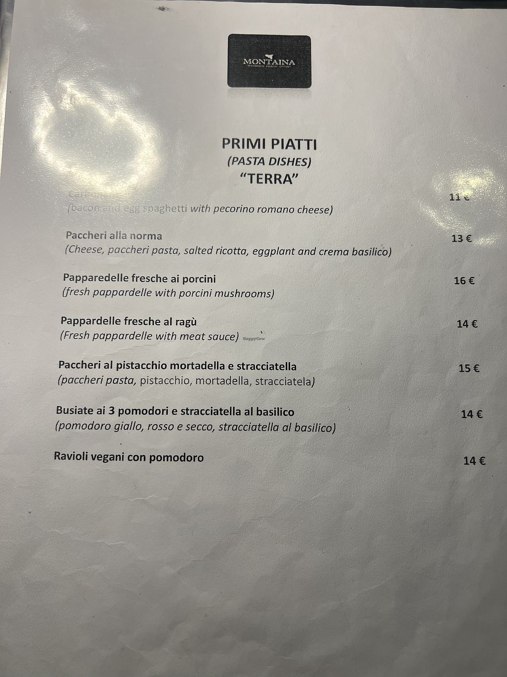 We had vegan Papadelle with mushrooms (the pasta was not labeled as vegan) and bruschetta. It was very nice and tasty.
