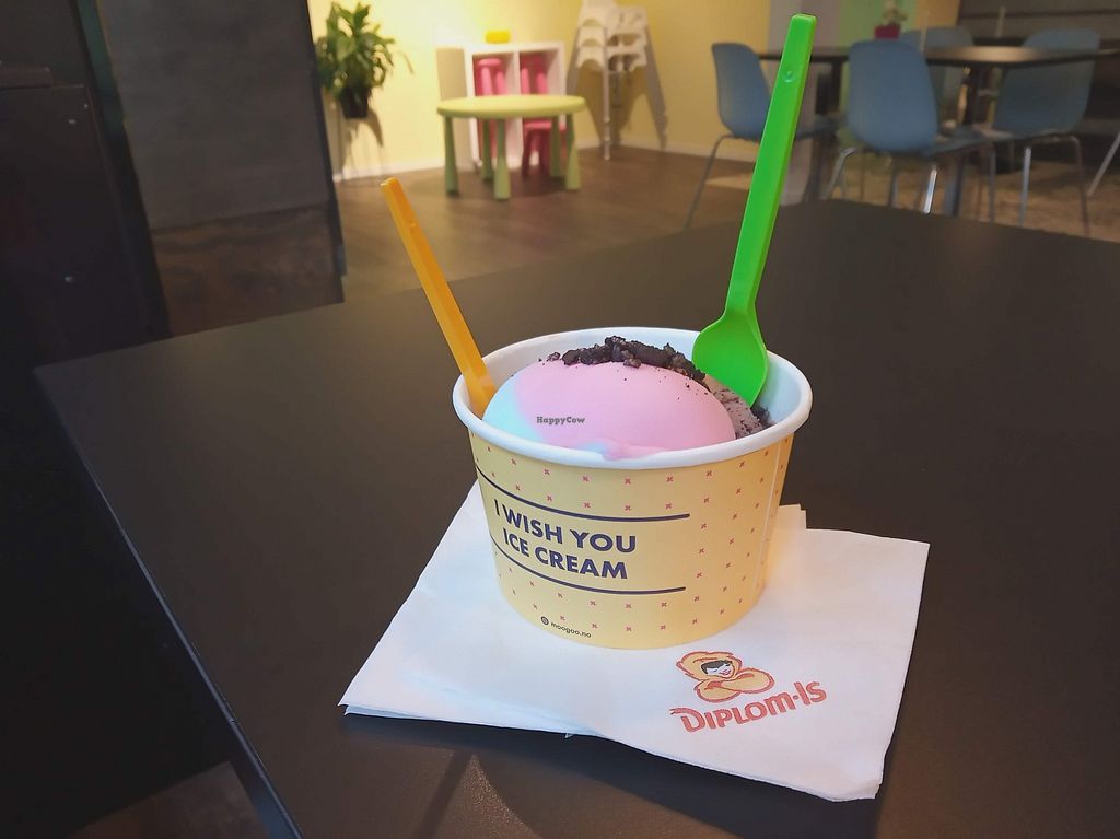 They only had 1 vegan options when we were there but it certainly was tasty! Combination of vanilla ice cream with strawberry and chocolate. We were all happy!